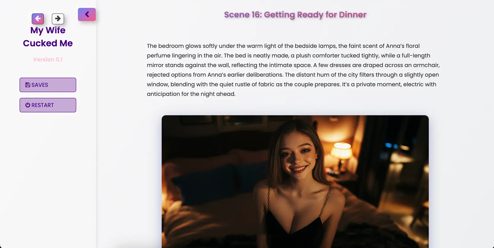 This game is a collection of short stories (some interactive, some visual novels) that share a focus on cuckolding, ntr and interracial fetishes. If that is not something you enjoy you should not be playing this game.​