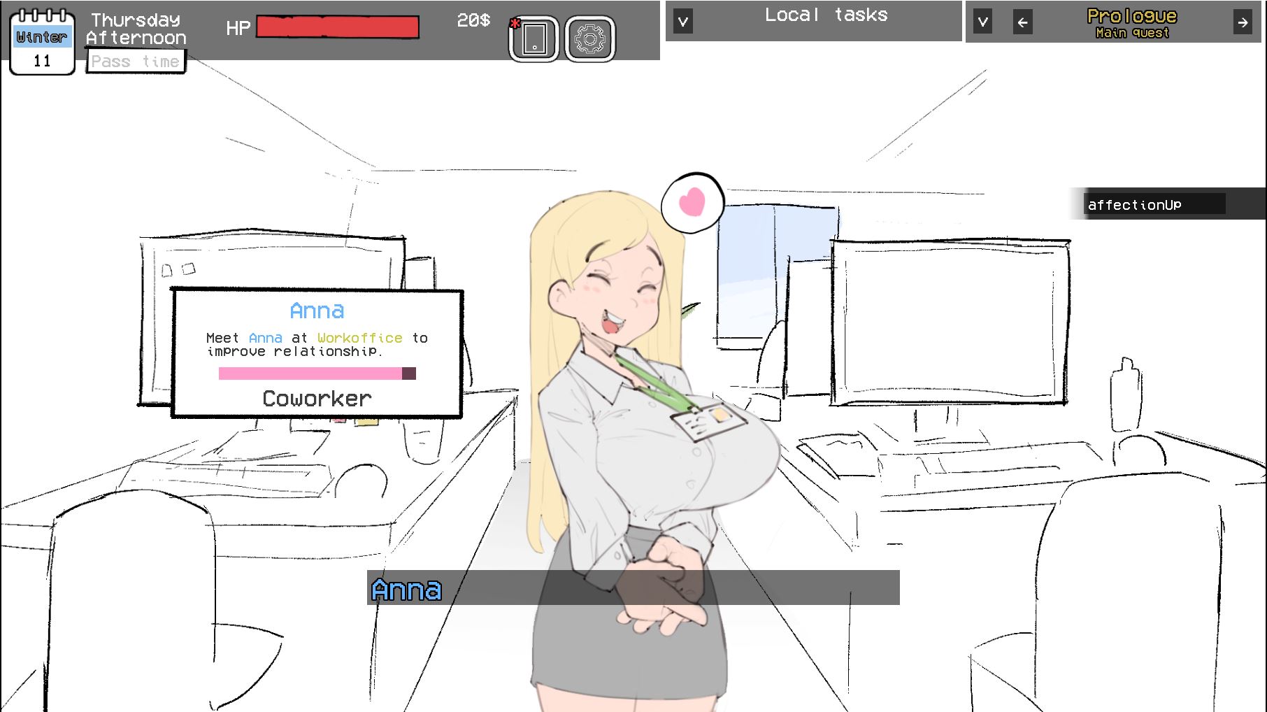 You play as Anon, the typical nerd salaryman on his late twenties.