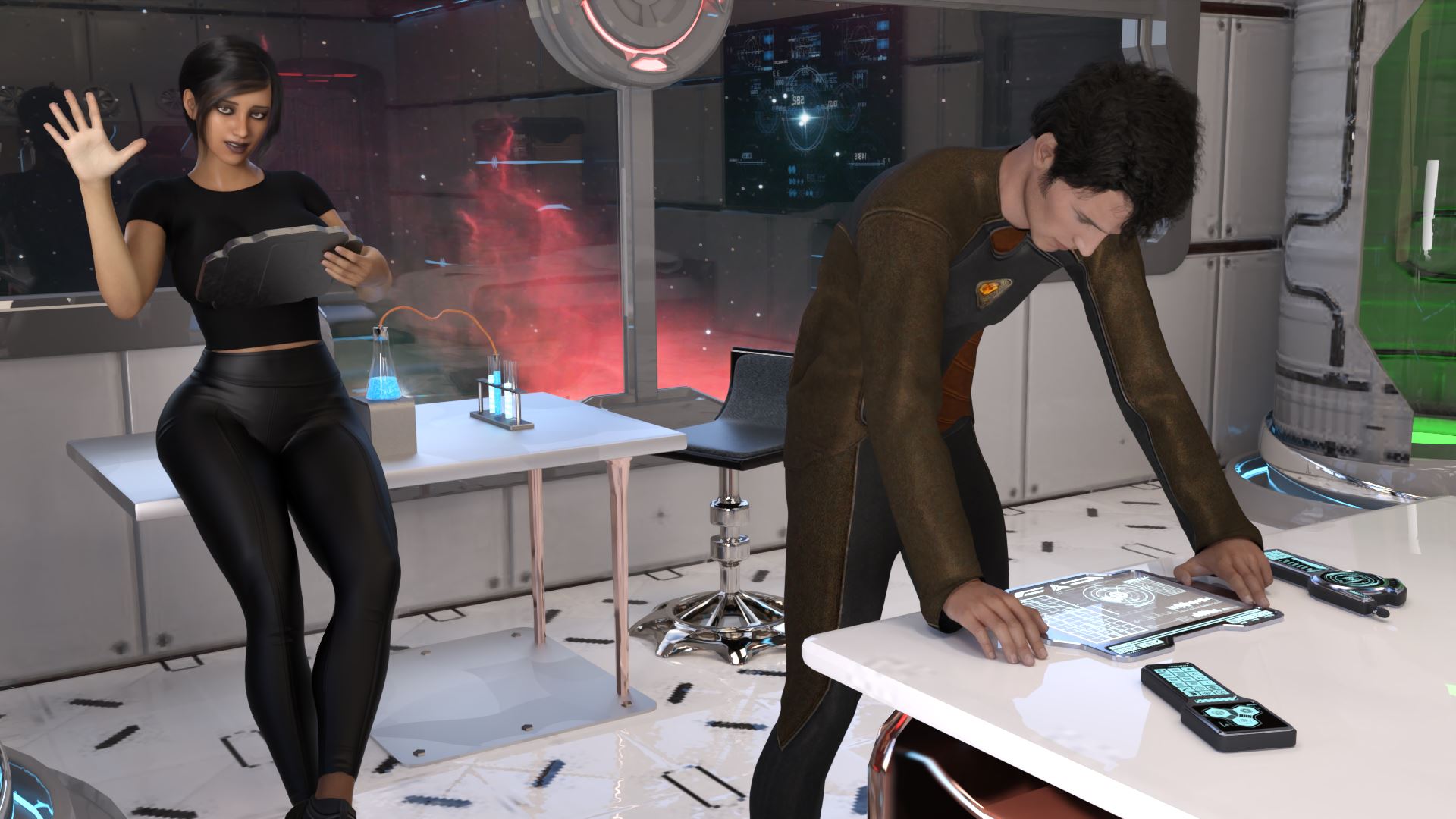 Planning to propose to your girlfriend of 5 years, the two of you take a romantic tour of the galaxy only for disaster to strike. Saved at the last moment, you are left isolated on a huge research vessel in a forgotten corner of space. Your rescuer – an amoral man gone insane from prolonged isolation – will stop at nothing to drag your girlfriend into a sexual relationship.
