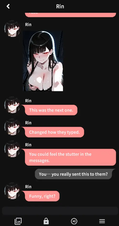 A fictional psychological simulation game where love and control intertwine. You interact with several virtual girlfriends, each with her own sadistic personality and story. They speak to you, tease you, and break you—message by message. Every step they take brings you closer to emotional collapse.​