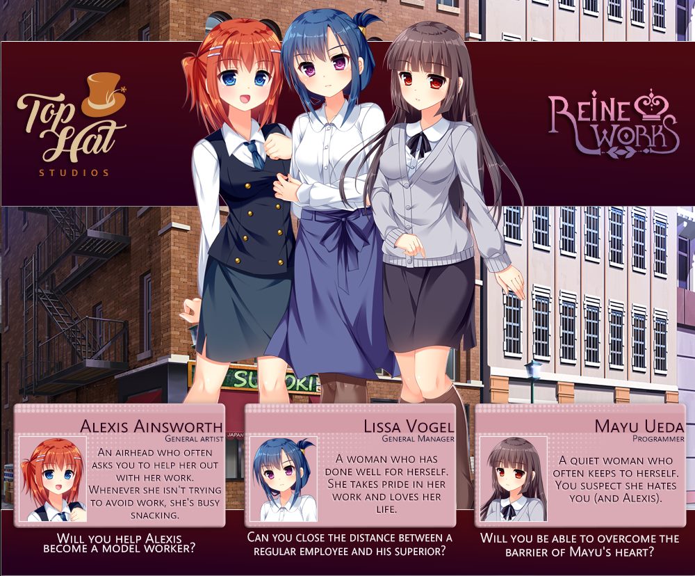 Your life is a peaceful one. Each day, you work alongside your (otherwise?) all-female workforce in the pursuit of creating otome games. Will you complete your life with a cute girlfriend? Will you be doomed to a life of normalcy? Or…?