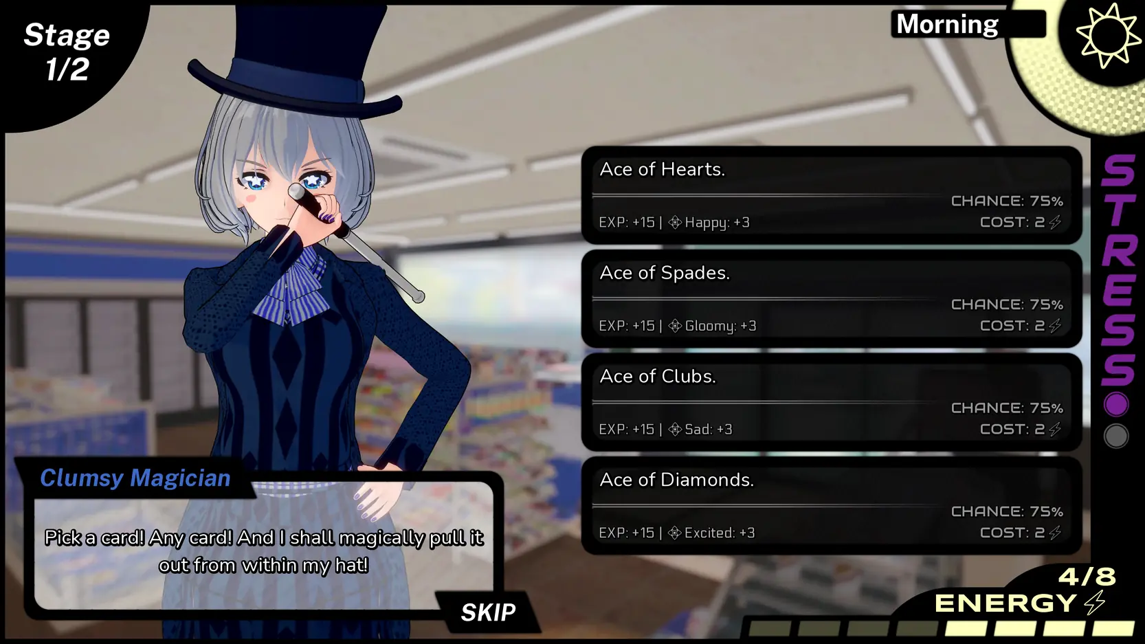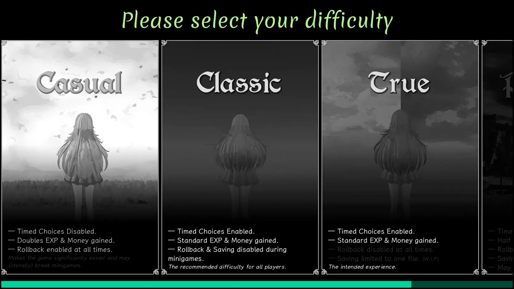 =Time bar for timed choices has been moved below the textbox and now plays a ticking sound. - Misc: +Added game version to main menu.
