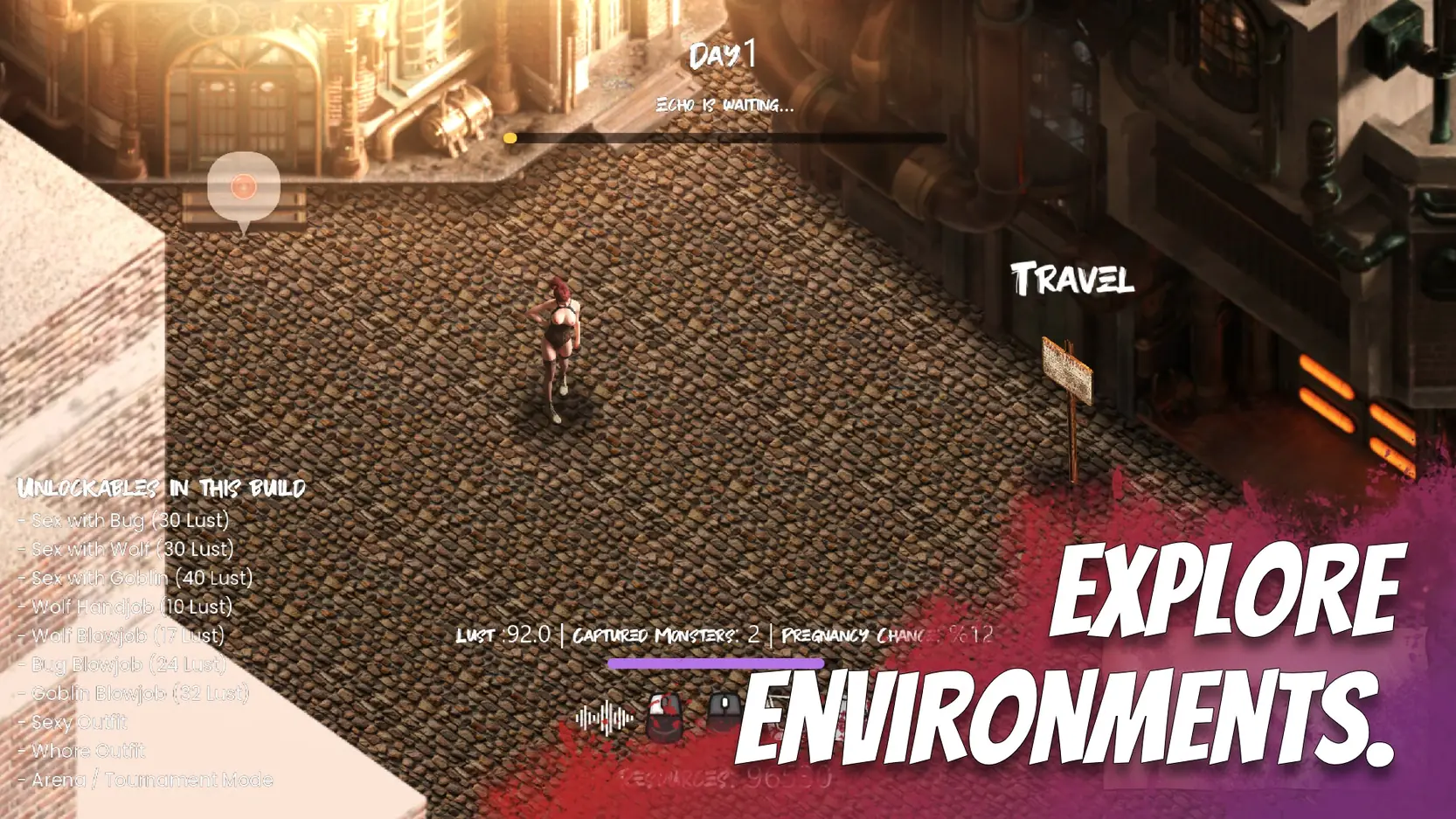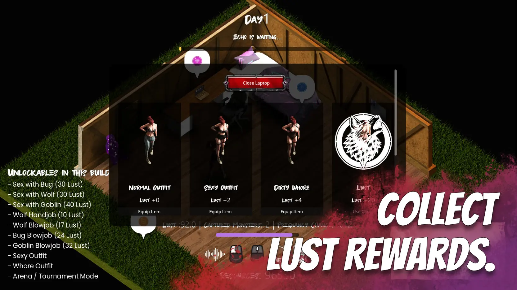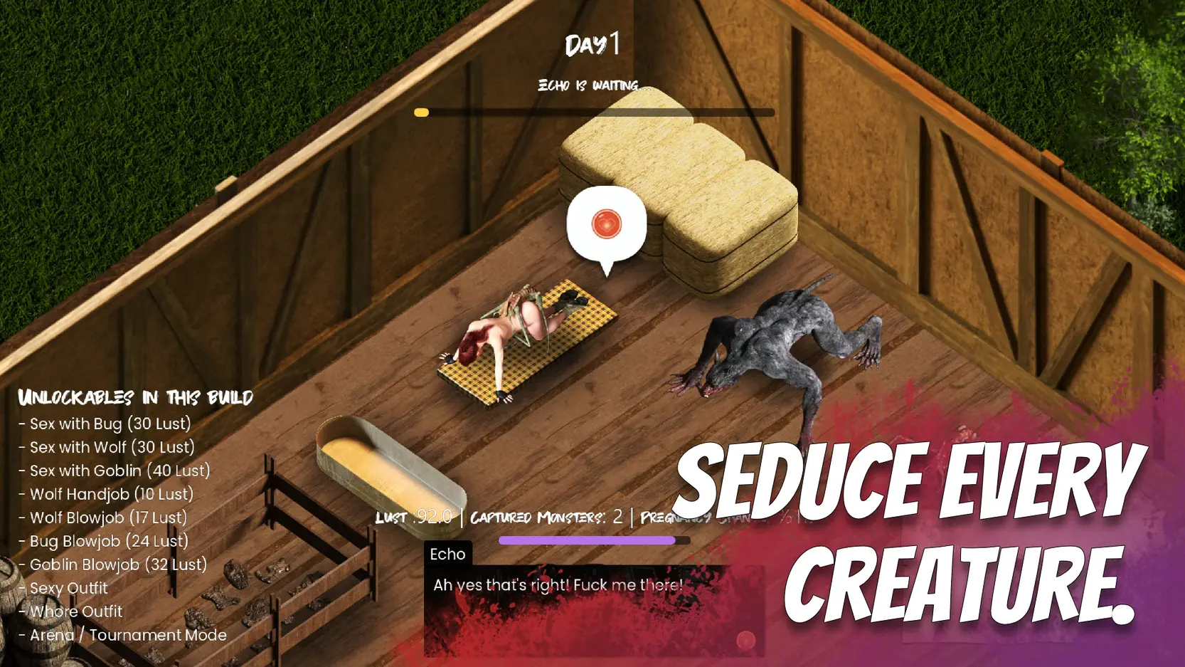 In Pheromone Seasons, you inherit a secluded ranch where desire flows through every season. Gather resources, work the farm, capture and breed monsters, and build bonds that grow stronger over time.