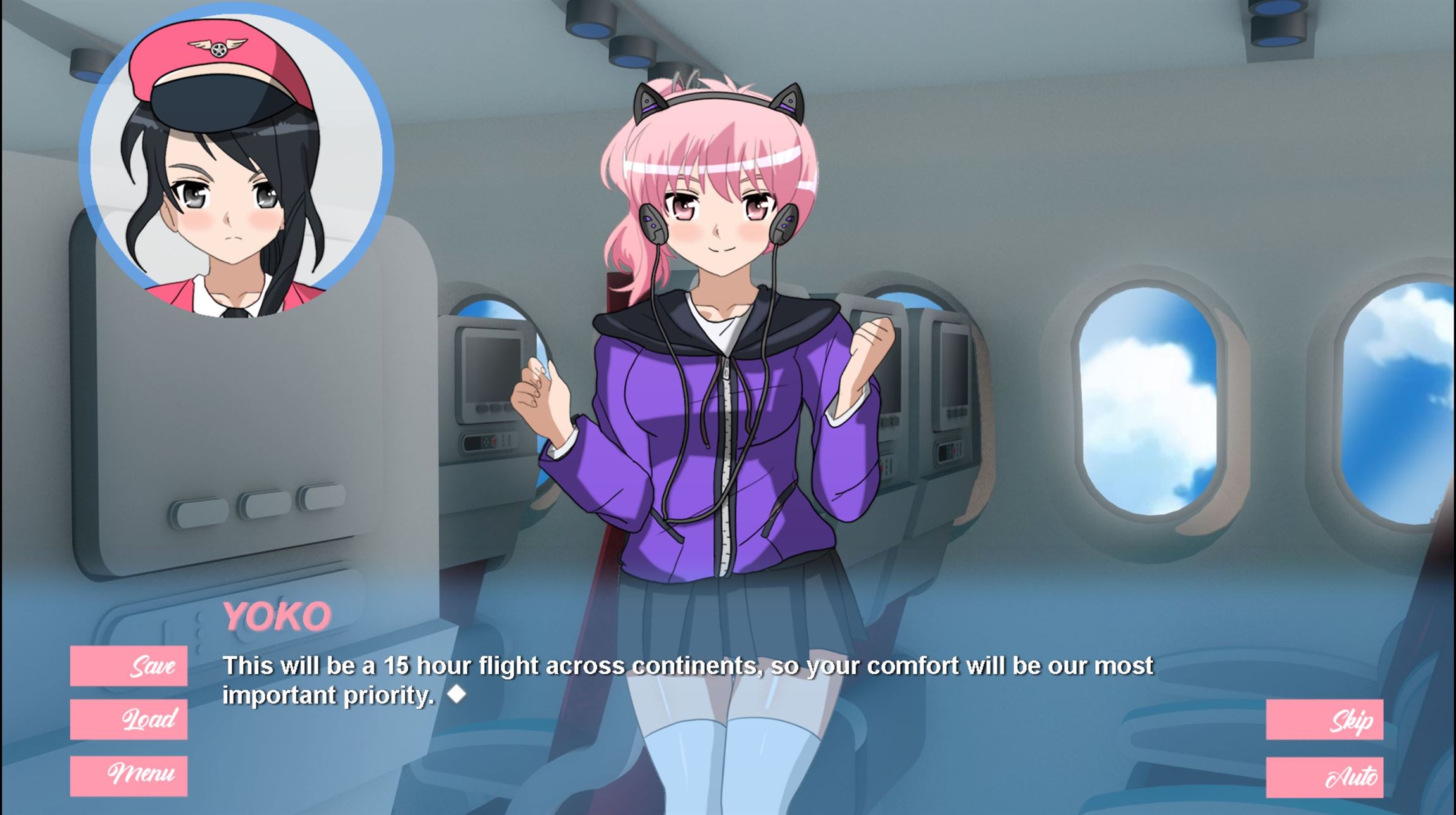 Your best friend Natsumi? The sexy air stewardess? The sweet Pilot? Or the smart food trolley guy? Your choice will determine the outcome!