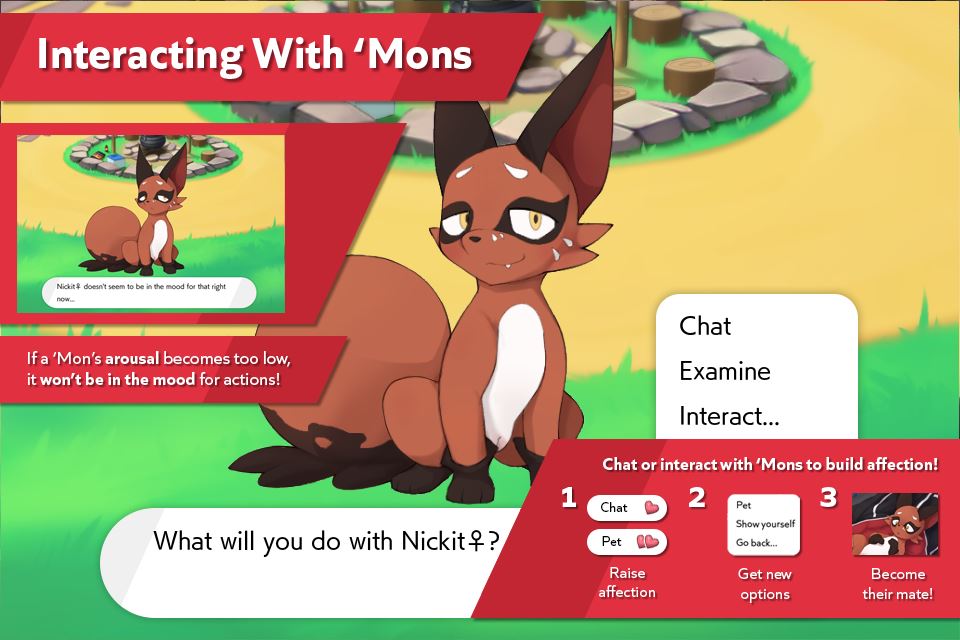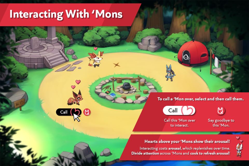 Presenting Pocket Campfire, a Tamagotchi-style experience with a handful of different ‘Mons to collect and interact with! You play as a seasoned camper who loves to get to know the local ‘Mons, making friends and exploring sexuality with them.​