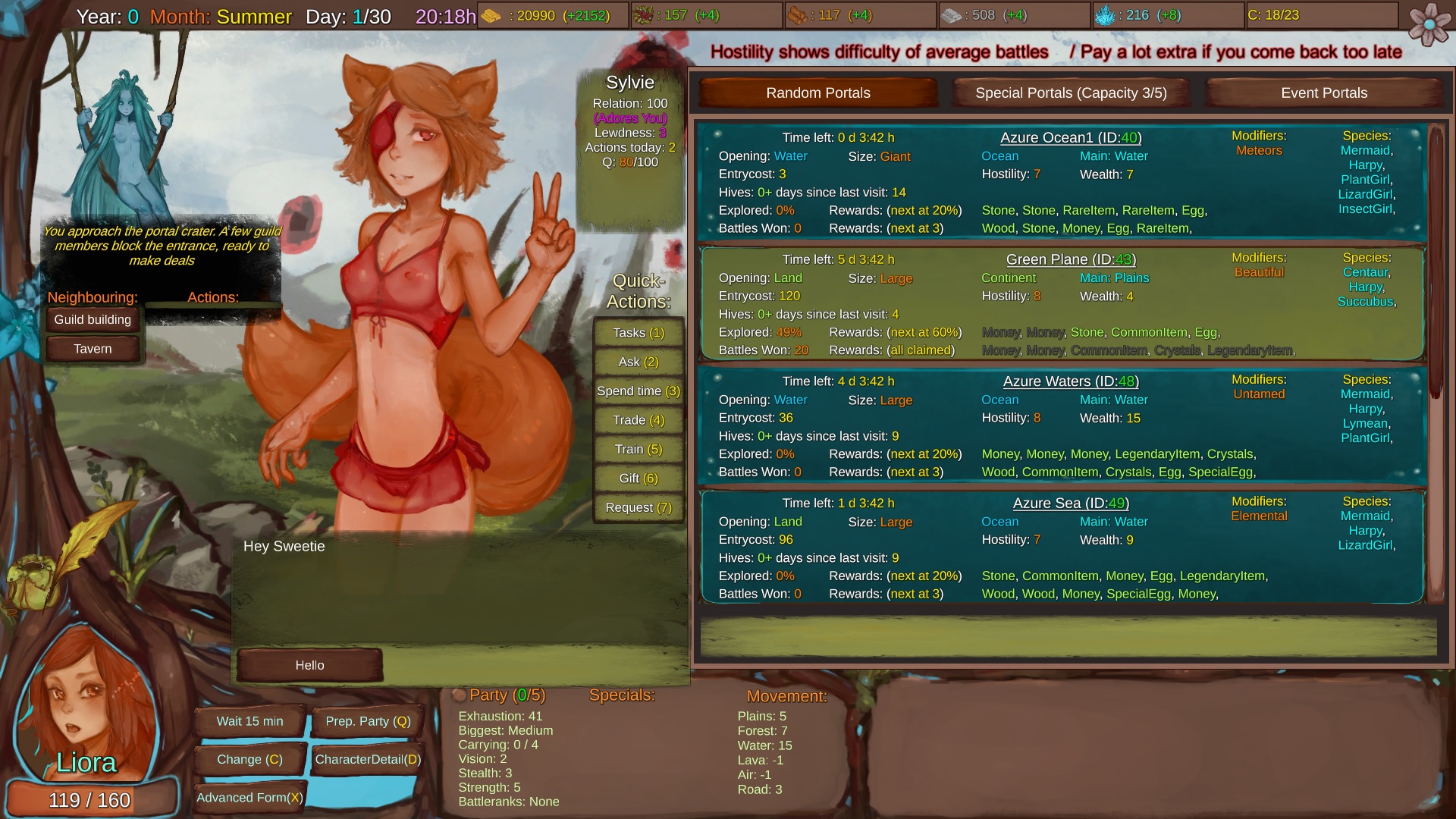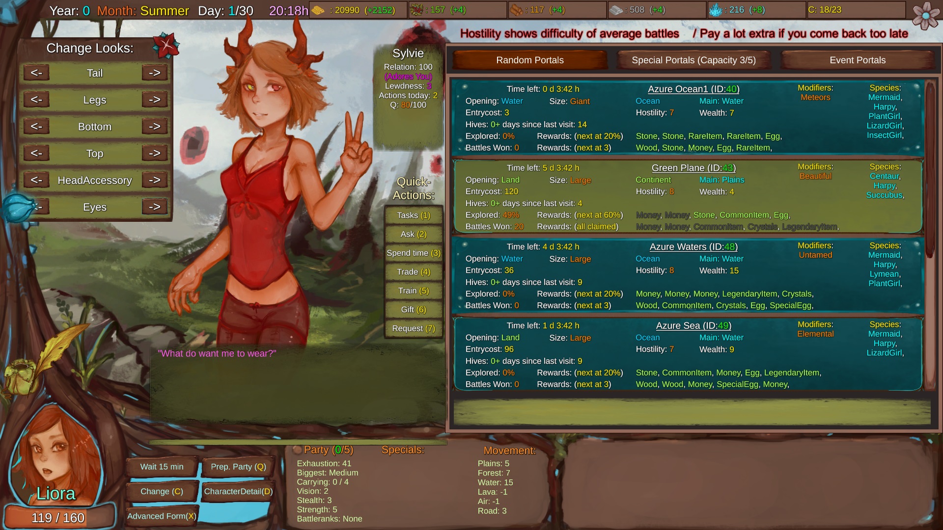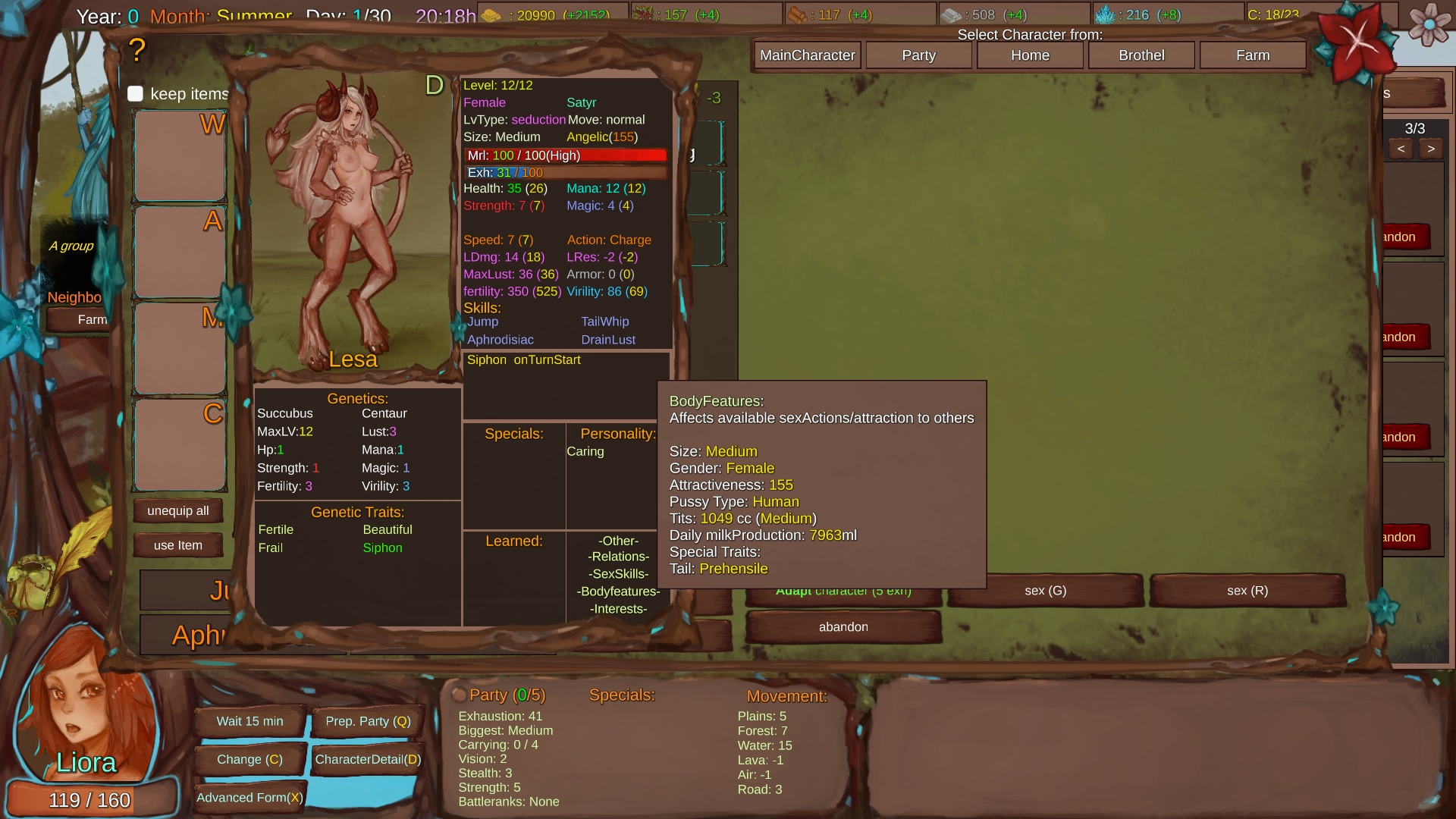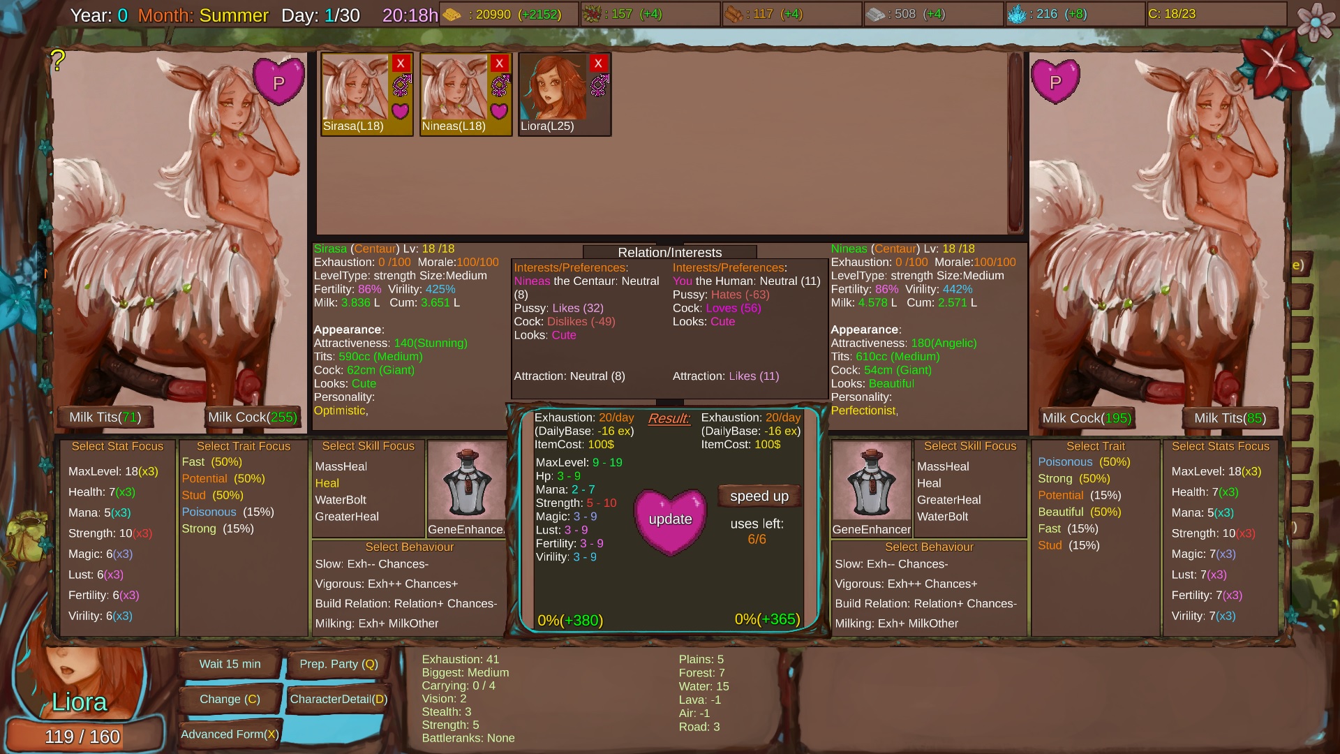 Main character is currently a female(or futa) human (still not quite sure about that. Maybe she will be a unique species that cannot be found anywhere else, making hybrids between her and anything else also unique). There will be a lot of base species (currently only 7 (Centaur, Harpy, Angel, Succubus, Mermaid, Plant, Lavagirl)) and all possible combinations as hybrids as your character pool to recruit from/ breed. NPCs will mostly be variants of those species or completely unique ones.