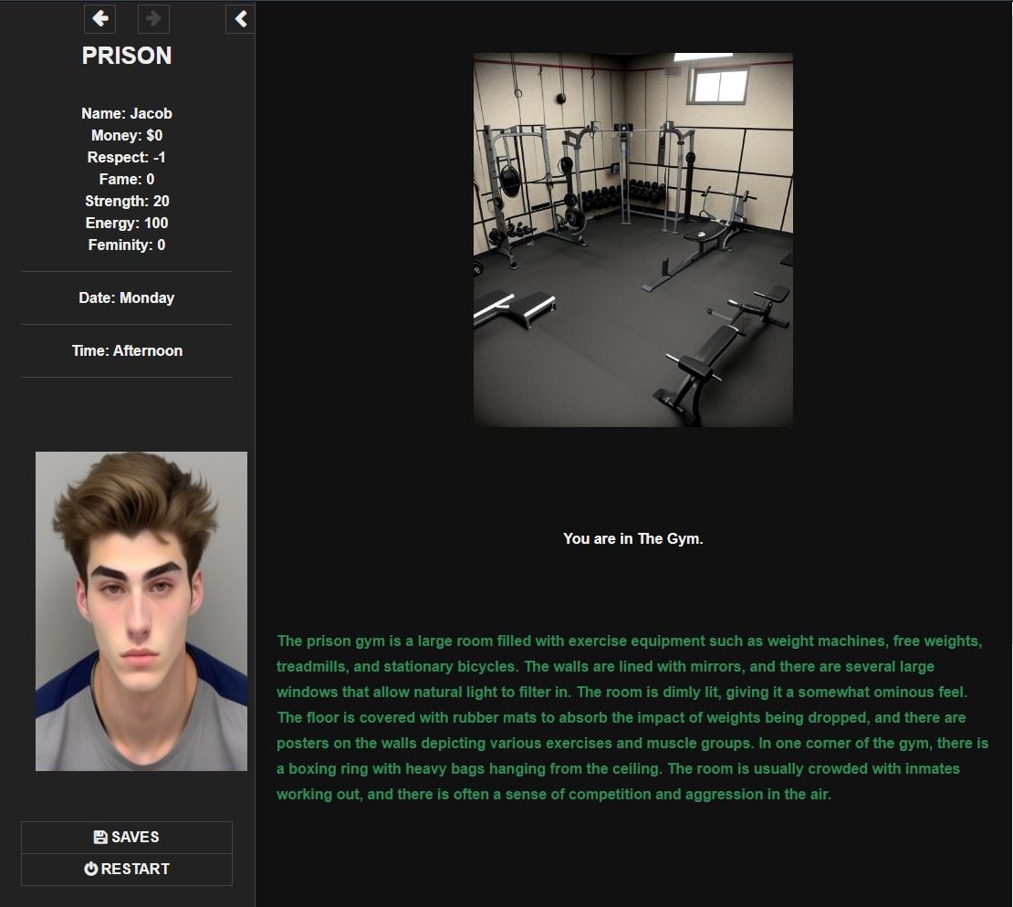 Help Jacob, a 21-year-old young man who has made a series of wrong decisions during his teenage years and has ended up behind bars. Join him on his journey to survive the best way possible in this HTML game, still in development.​