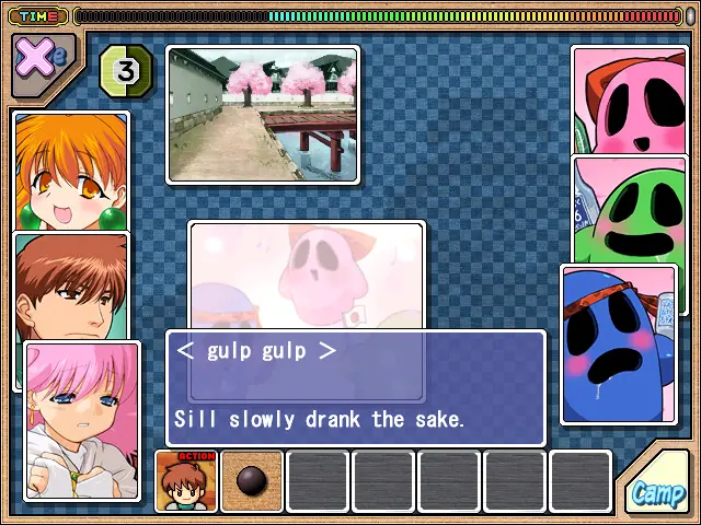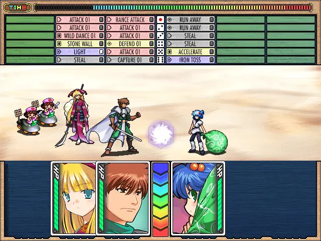 Rance 5D introduces new features to the standard gameplay formula of the series. The dungeon navigation is done from a “wheel screen”; the player has to spin the wheel, and as a result Rance and his party will advance to a new location. Even though the player can choose the speed of turning the wheel, and field representing different locations are displayed on it, landing on a new location depends mostly on luck. Rance can encounter a random enemy, find a treasure chest, trigger an event, etc. The battles are somewhat simplified, using a standard turn-based engine without the strategic element of moving on the battle field. As always in Rance, expect to see some hardcore erotic images.​