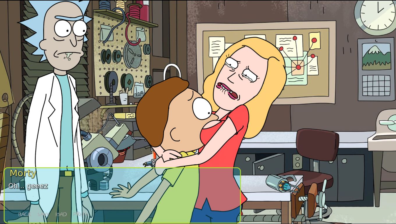 “THE PERVIEST CENTRAL FINITE CURVE” is a sexual parody Visual Novel based on Rick and Morty. You play as Morty, who due to a disaster, he and Rick are trapped far from their dimensions in a place where they can unexpectedly indulge their sickest thoughts….