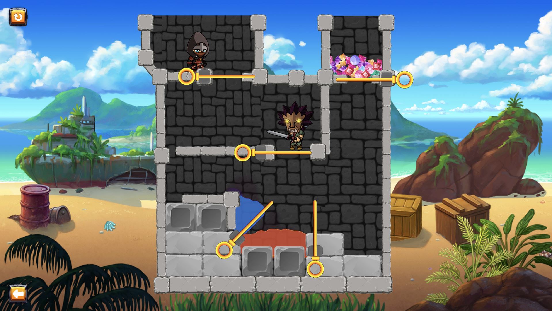 This is a puzzle game in which you have to solve a puzzle in order to save the princess from the monster in the ancient tower. You must solve the puzzle in the correct order so that the monster does not get to you and the princess.​