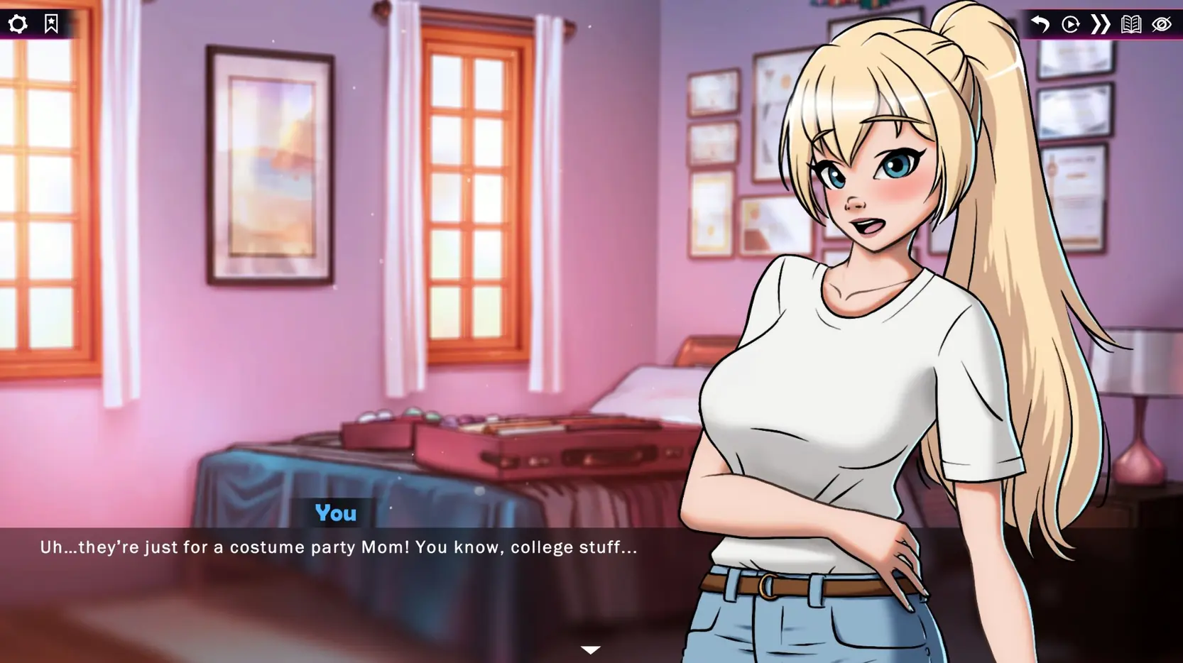 Scarlett University is a visual novel that takes you on an erotic, high-stakes journey as a wide-eyed freshman steps into the world of elite sexual refinement. Enrolling in secret, she quickly progresses into the university sex simulation program where she finds herself well out of her depth, but buckled in for the wild ride she spent her teenage years fantasizing about. An unexpected malfunction in the simulation device exposes hidden ulterior motives lurking beneath the glossy campus façade. She’ll need the support of her exciting new friends to make it to graduation without losing herself to the darkest corners of desire.​