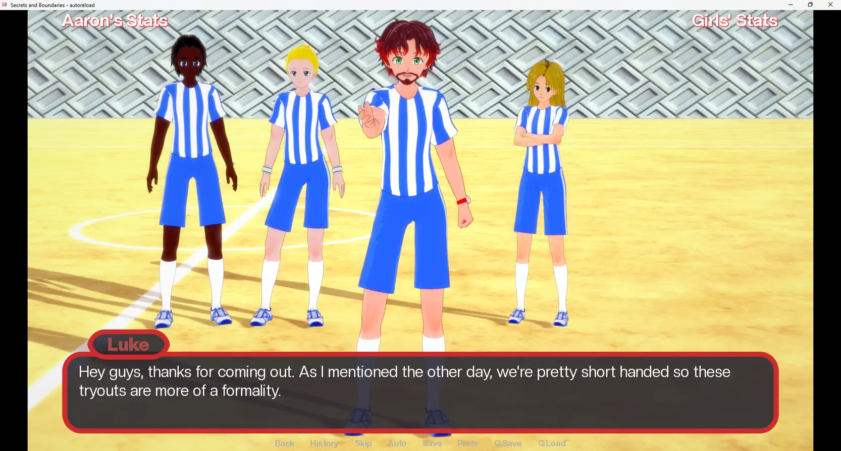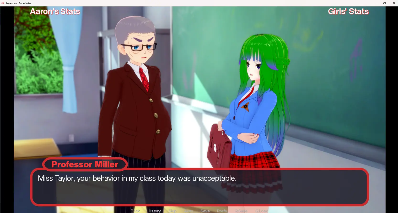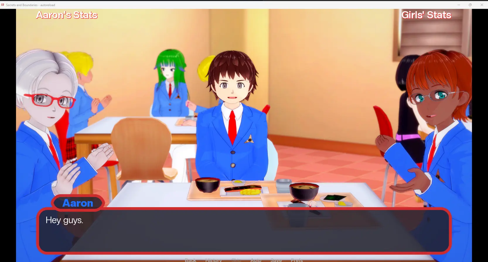 “Secrets and Boundaries” will follow our main character Aaron (name is customizable) as he starts his freshman year at the illustrious Viktor Khondria University. He will meet many people including several lovely ladies for him to try his luck with, though there are plenty of other guys who are also competing for these ladies’ attention.