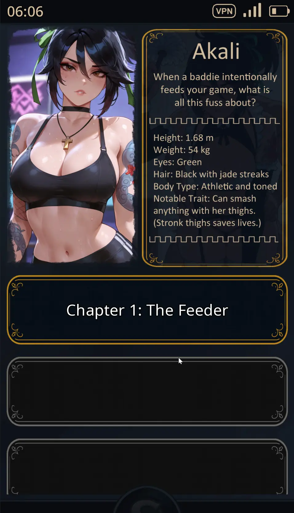 When you’re playing league and feeder akali of your team is a humiliation lover girl. What if you stole Xayah’s heart right in front of Rakan’s eyes? Have you ever wanted to sext with your favourite league champion? Then this is the game you’d like to play!