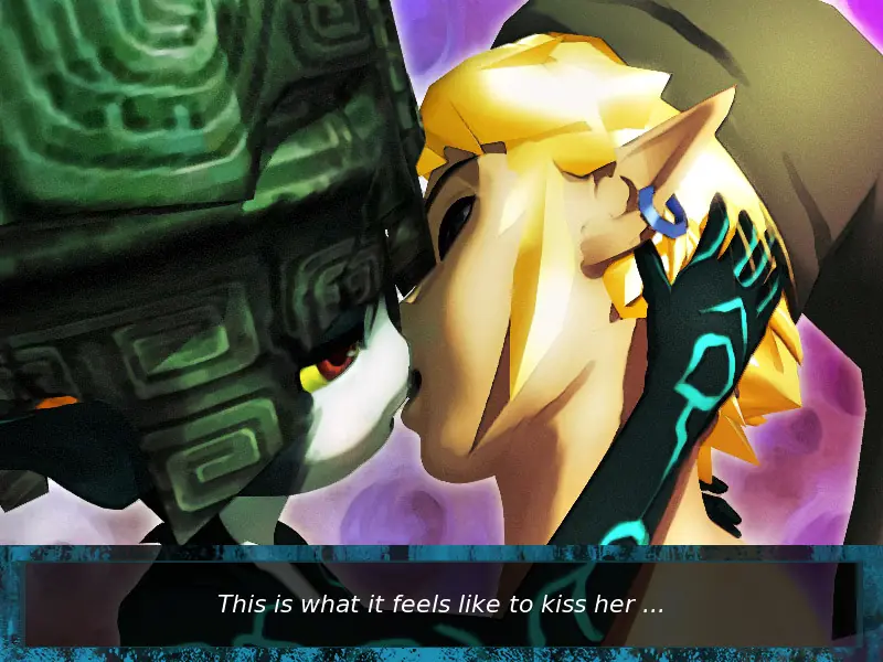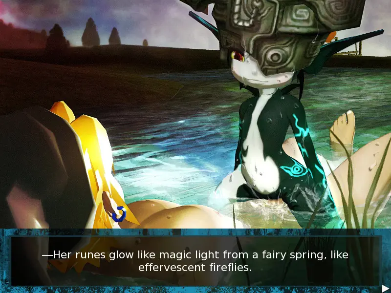 For fans of Twilight Princess who always thought there was quite a bit of erotic tension between Link and Midna, in this doujin (fan) game you play the role of Link as he brushes up on the art of seduction. [From Ren’Py Games List]​