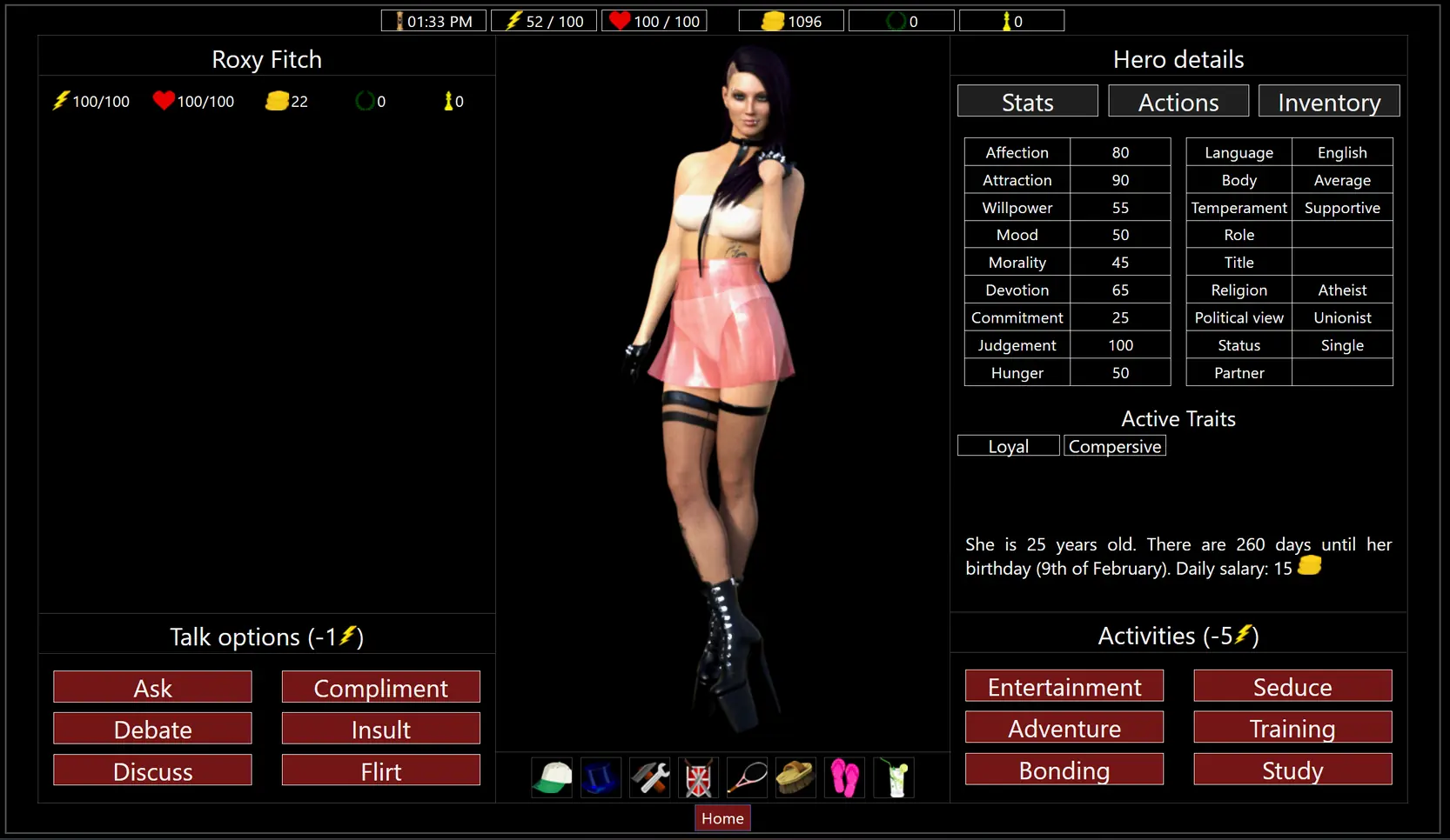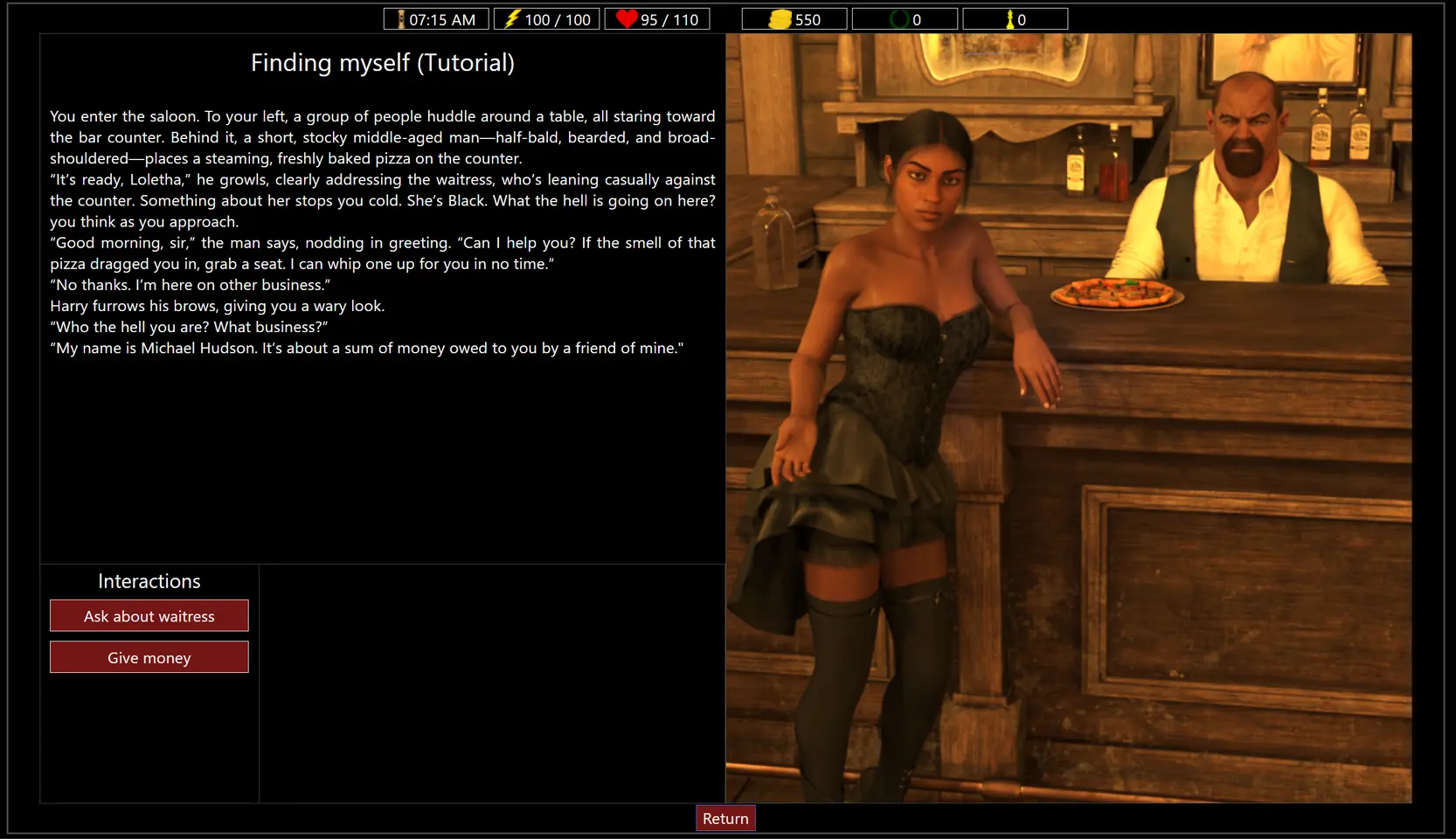 This update is about the first chapter of the Seven Sisters questline. This is a long questline with 4 choice-based routes, each of which will later trigger its own separate questline, and it includes more than 50 rendered illustrations—around 50% more than the previous 2 questlines combined. To see them all, save frequently and try out all 4 possible story scenarios. The questline starts after completing all tutorial quests (defeating the bandits). Just walk around the city to trigger it (the 2nd quest starts a few days after your first escape). All new content is related to this questline.