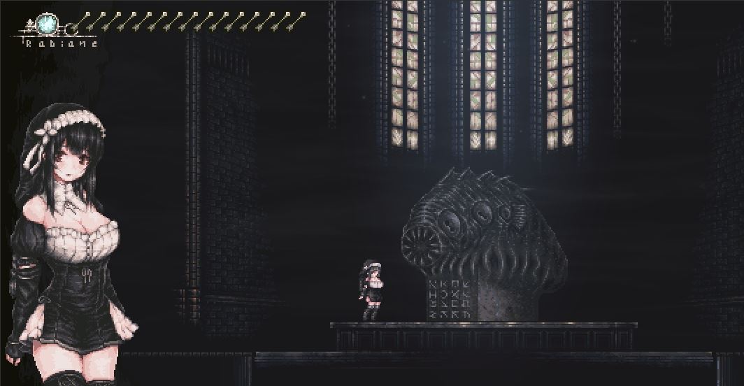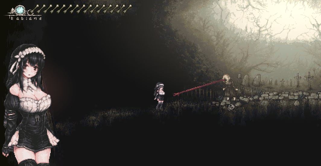 This is a simple 2D action game featuring Rabiane, a sister sent by the Church to exorcise monsters in a cursed land.