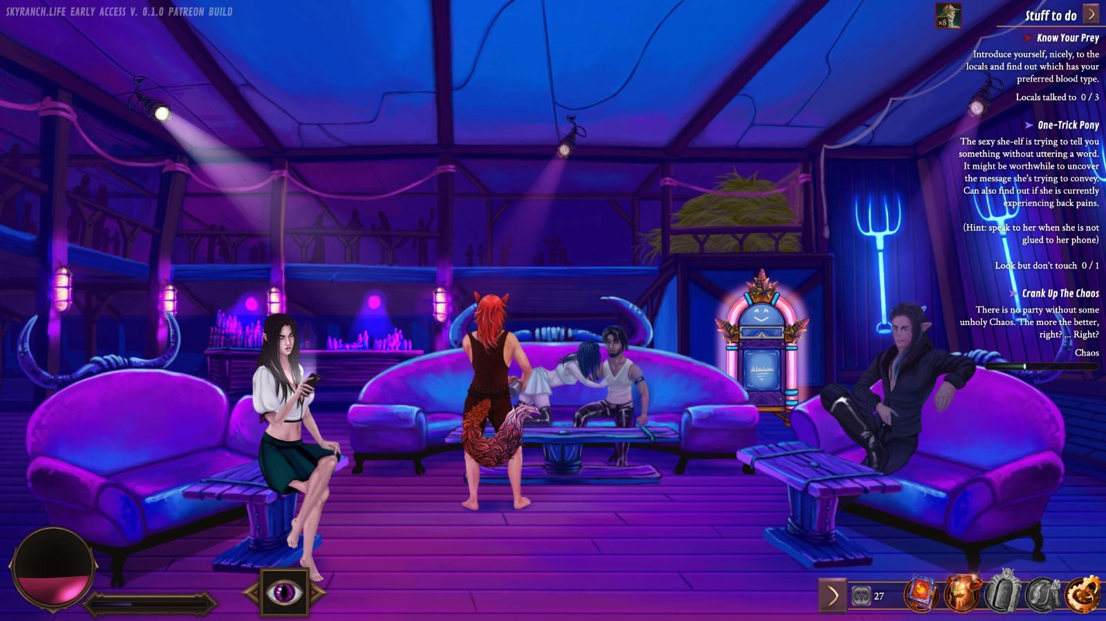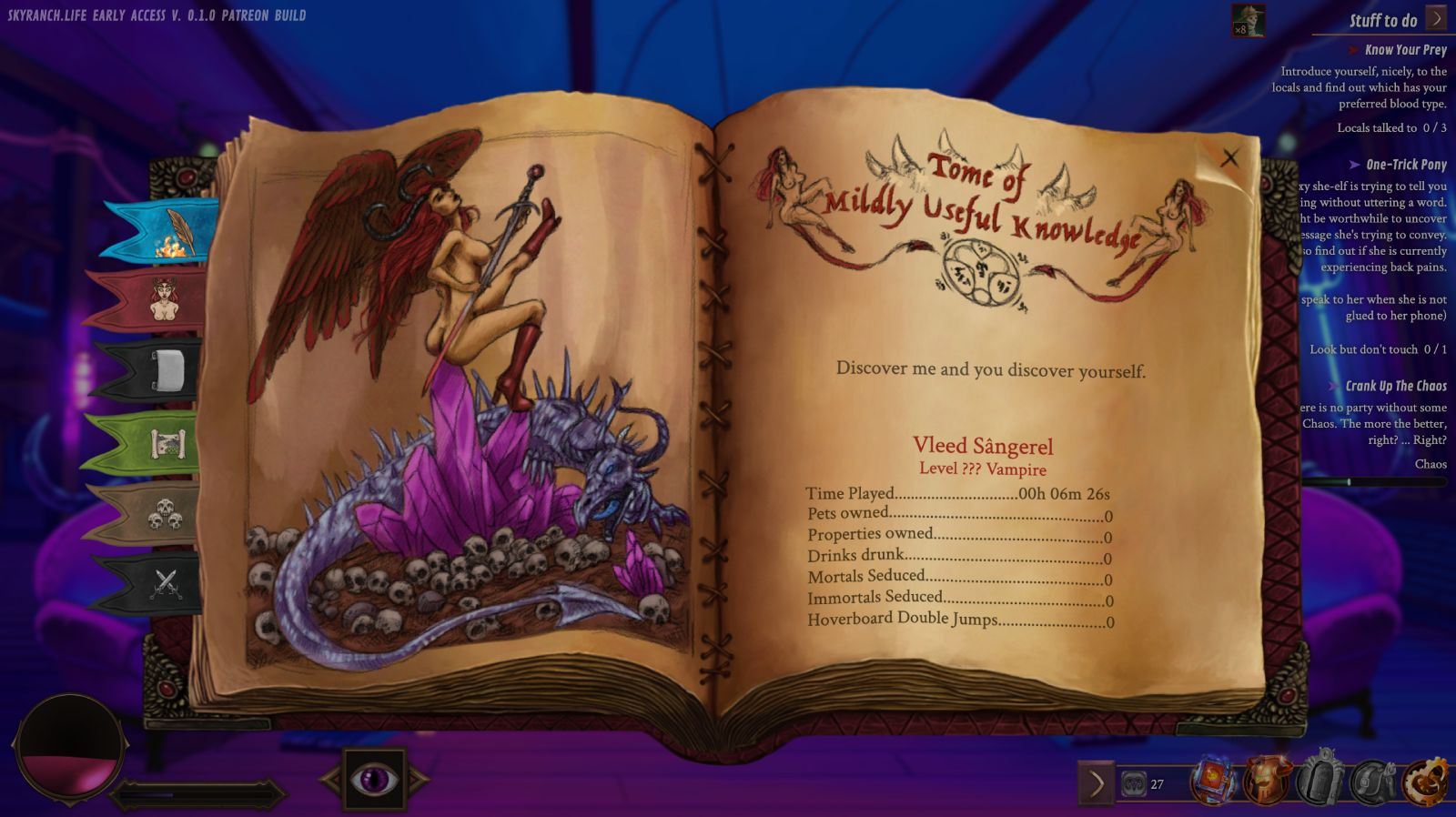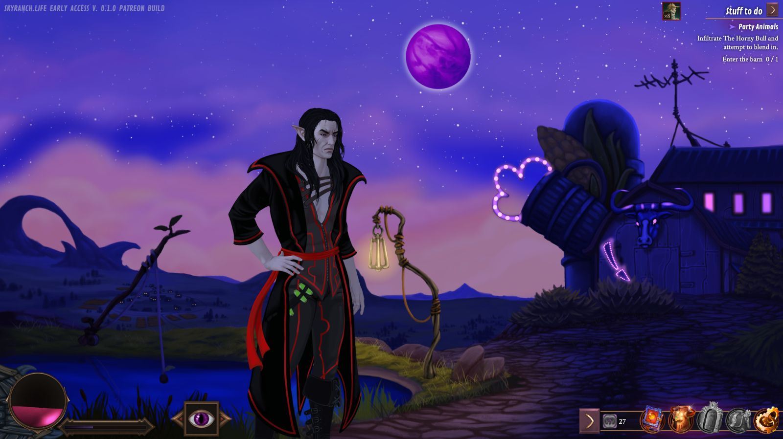 SkyRanch.Life is a 2D Hand-Drawn Free RPG Dating Sim Visual Novel with a Vampire anti-hero male protagonist.