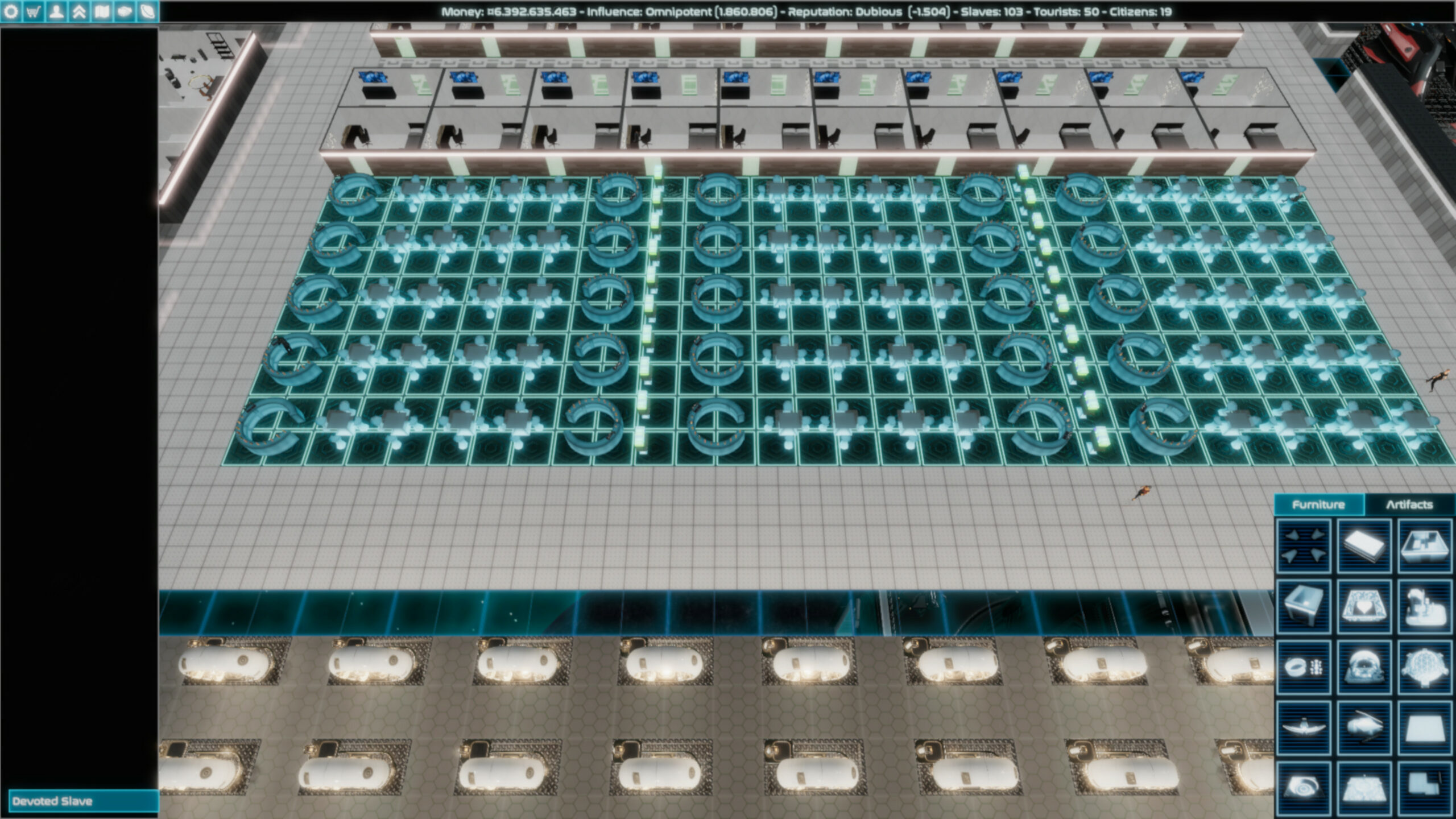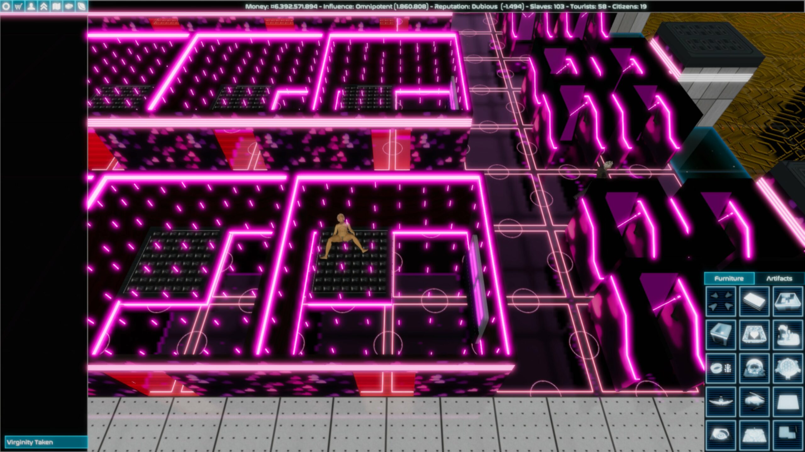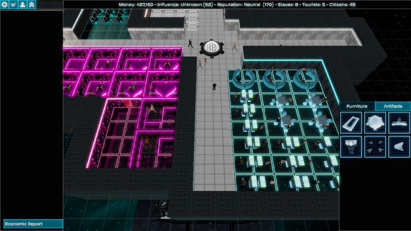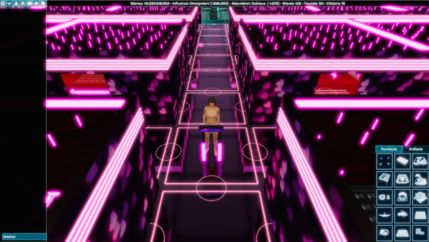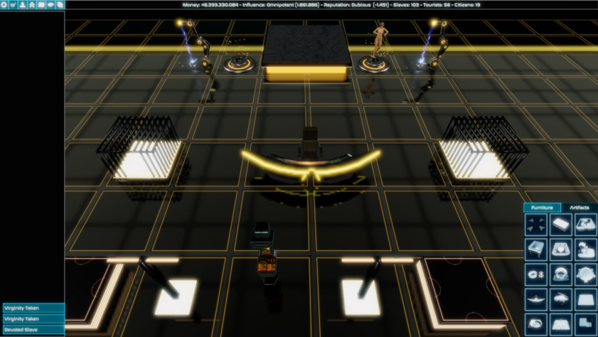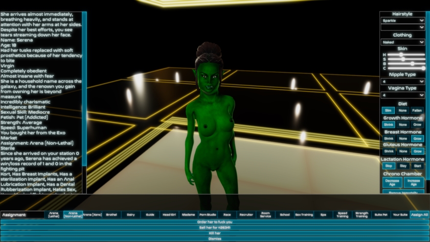 This is a game about slavery and war in an age without rules of engagement. As a player, you will have the option to commit several crimes against humanity. If that’s not your cup of tea (sexually or otherwise), I respect your moral luck, but you will likely find everything about this game horrifying. That said, all characters are over 18, and I don’t think anyone should do anything described in this game in real life (except maybe for sitting at a desk all the time, but even that’s not good for your back). Stationmaster is a base-building game with a 4X space strategy component and a heavy focus on sexual slavery. You are the owner of a space station, and build it from a small-time floating brothel to the center of a galactic empire.​