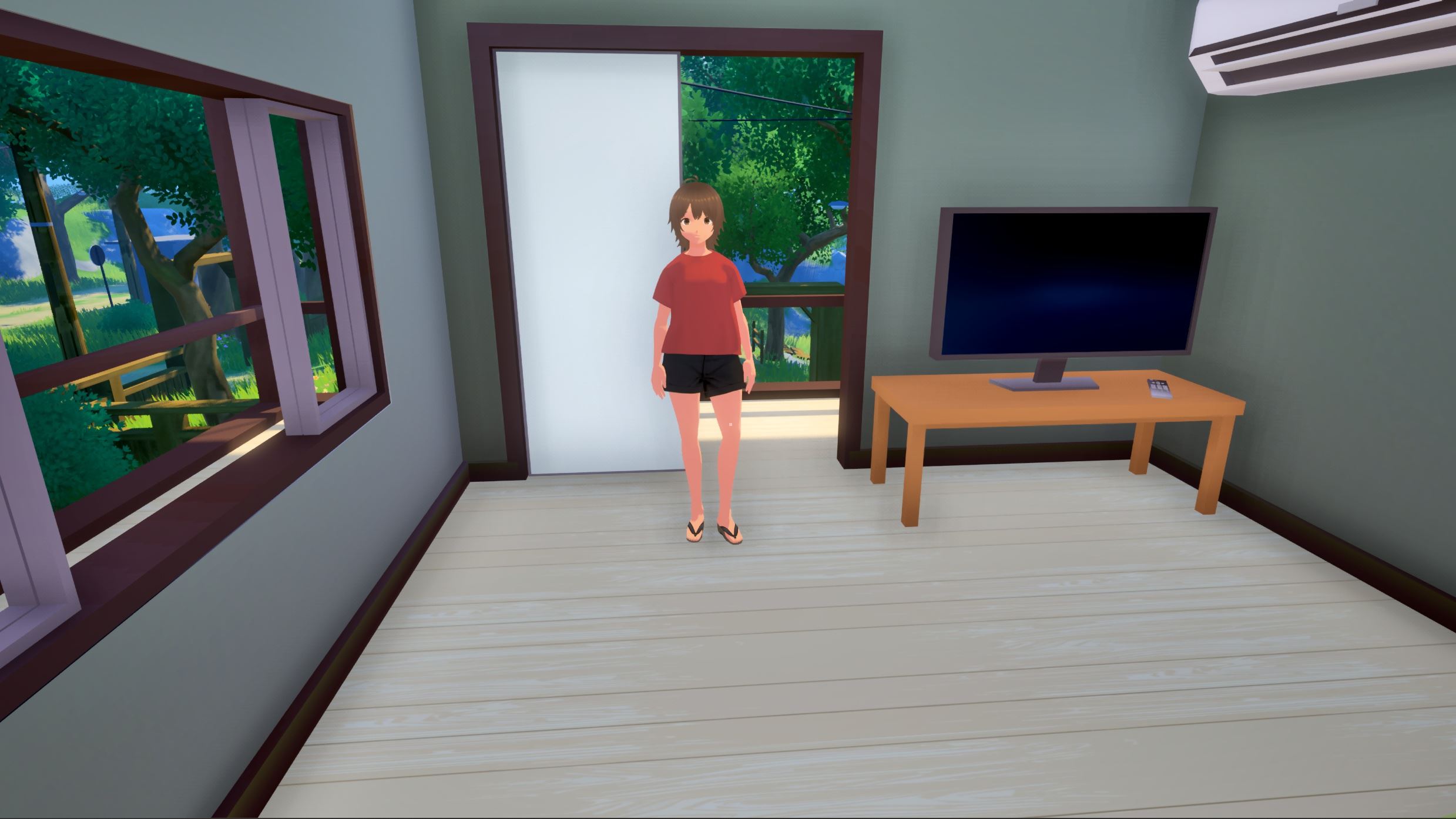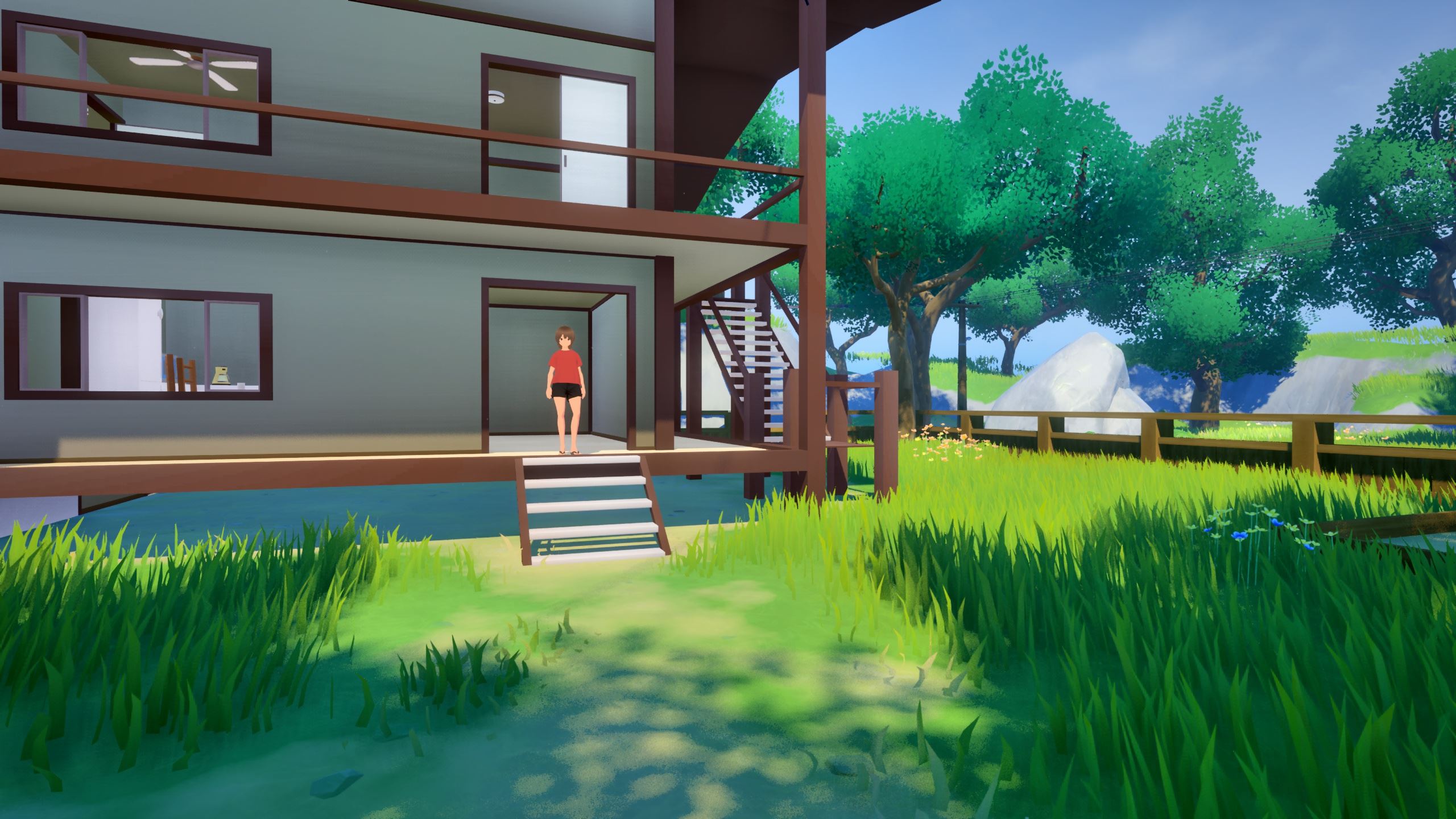 SUNSHINE COUNTRYSIDE is a first-person, erotic, cozy dating sim. In its current state, you can walk around, catch bugs, and engage in intimate activities with your best friend—all within a cozy ambiance and accompanied by a chill soundtrack with cel-shaded graphics.