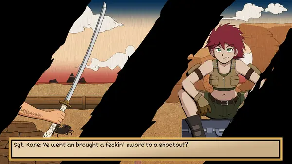 This wonderful nude beach has been invaded by a horde of women in admittingly fashionable swimsuits, so it’s up to a lone naked samurai to enforce the undress code!