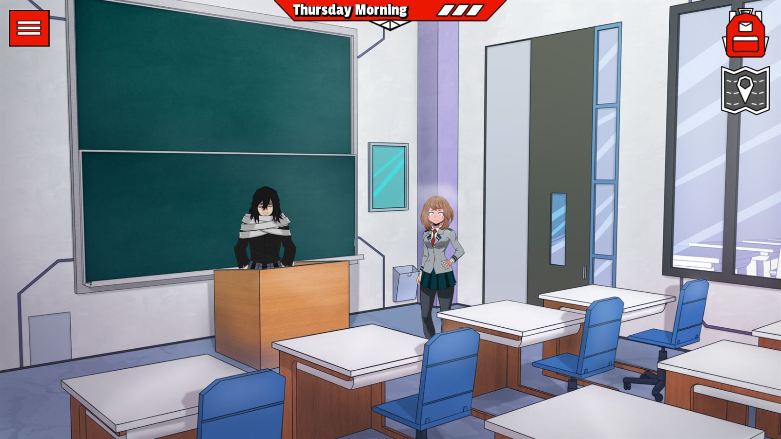 - Fixed camera placement in the classroom when character stands were visible there