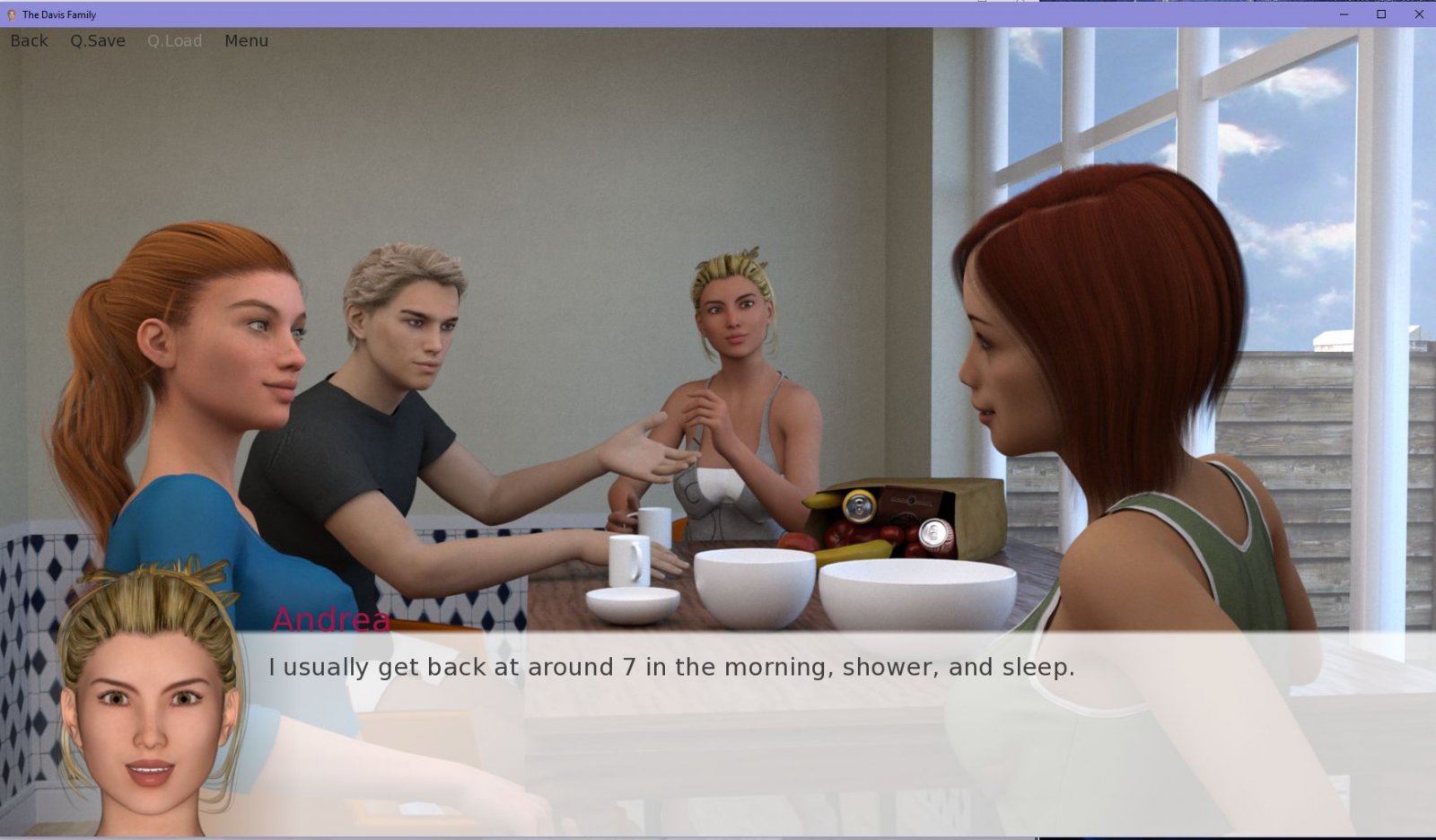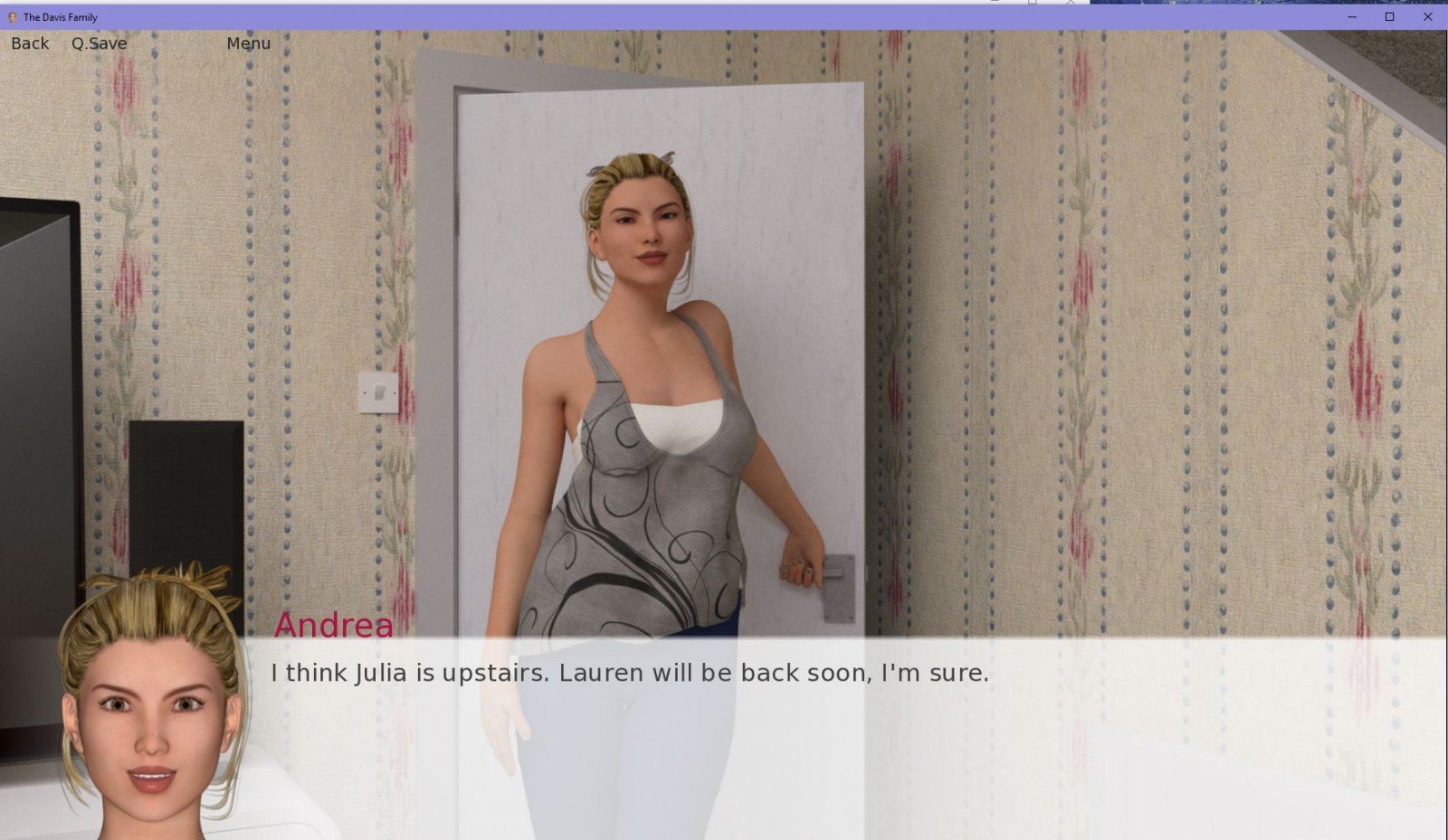 In The Davis Family, you play as Josh. Josh is either a college-age son who is returning home (after years abroad) to live with his mom and sisters, or a foreign exchange student who is living with a host family. You get to decide! Once you settle in to the house, you can get to know Andrea, a working mum who doesn’t have time to date but seems suspiciously relaxed all the time; Julia, the younger sister who is still coming into her own; and Lauren, a once-shy and reserved schoolgirl rebelling against authority with her boyfriend.​