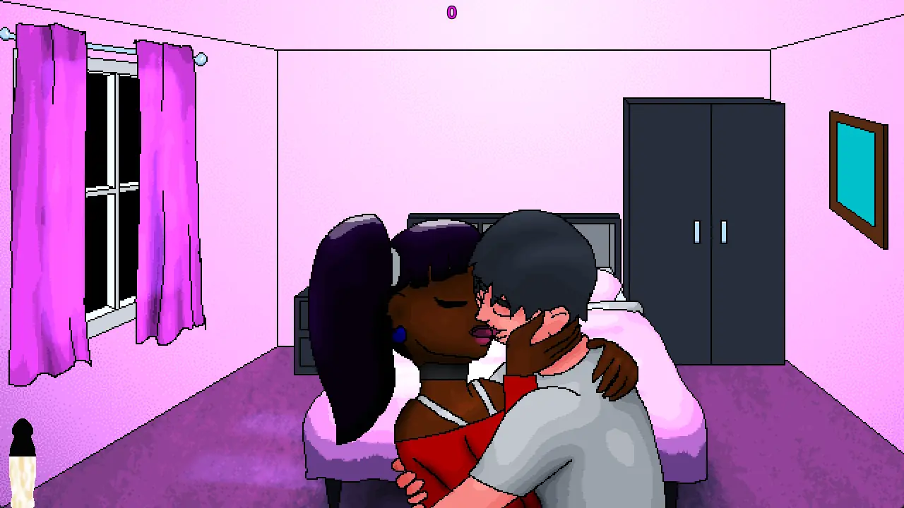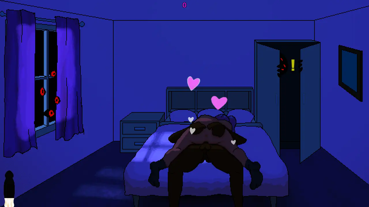 A woman bring a man in her bedroom, where monsters lurks in the shadows.