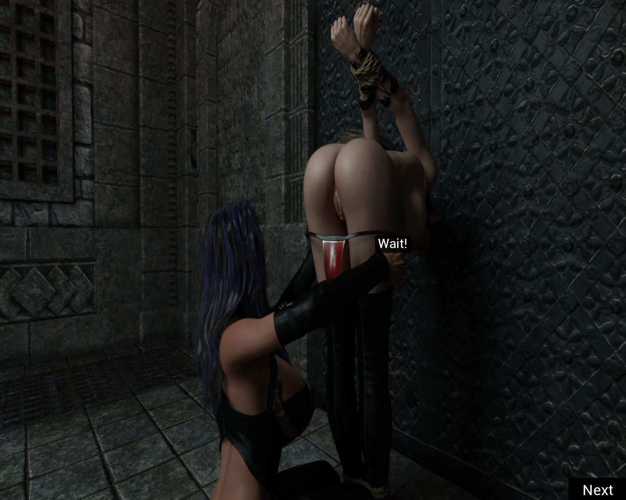 “The suffering of Larina is a visual story with choices that affect the ending. Most of the story is told through pictures rather than text. The length of the story is determined by your choices. The story contains sexual content, nudity and violence.”