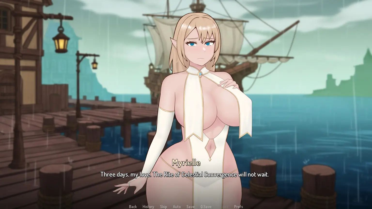 You are a seasoned adventurer, and your greatest treasure is your beautiful elven wife, Myrielle. A devout priestess, she is loyal and deeply devoted to you.