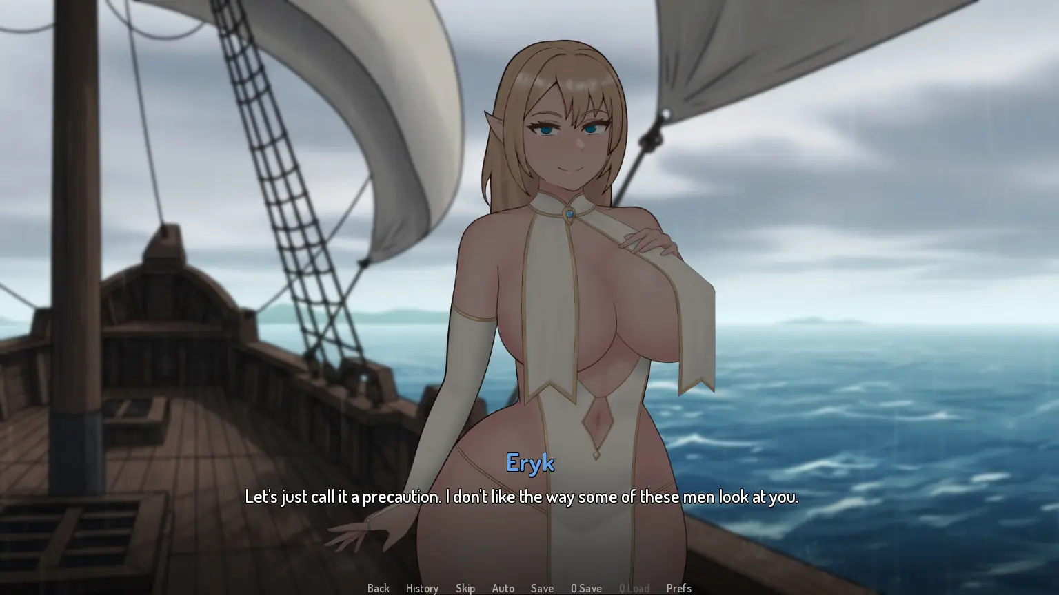 A sea voyage to a sacred ceremony takes a disastrous turn when a violent storm casts you onto the shores of an uncharted island. Washed ashore, you find only two other survivors: your beloved Myrielle and Borwin, a fat, lecherous sailor from the doomed vessel.