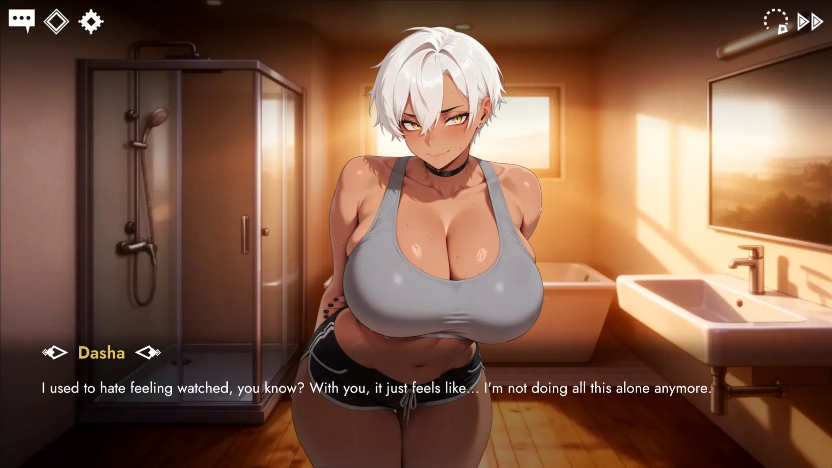 Reconnect with childhood tomboy friend Dasha in Russian city Samara as roommates. Teases lead to encounters: “accidental” glimpses, sneaky closeness, beach outings, oiled massages, foot play. Become closer through interactions that unlock NSFW animations and CGs. ignite her bold passions.​
