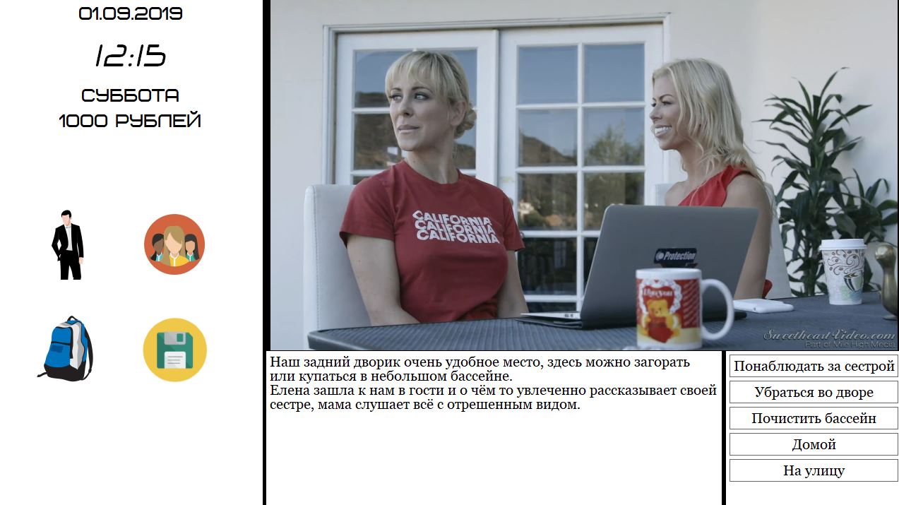 Hello, my name is Alexander! I am 19 years old and here I live with Maria and Yulka, she recently turned 18 years old. My father was in a plane crash two years ago, the plane disappeared over the ocean, the wreckage was never found. Since the plane crash, Maria is depressed, I tried to ease her life, helped her, etc., but so far nothing helps. Yulia is a typical young girl, stuck in the phone loves fashion, music and movies. We get along well, sometimes walking together on weekends. Well, I graduated from school and entered the local university. We should look for some extra work, or Maria’s hard to support the two of us.​