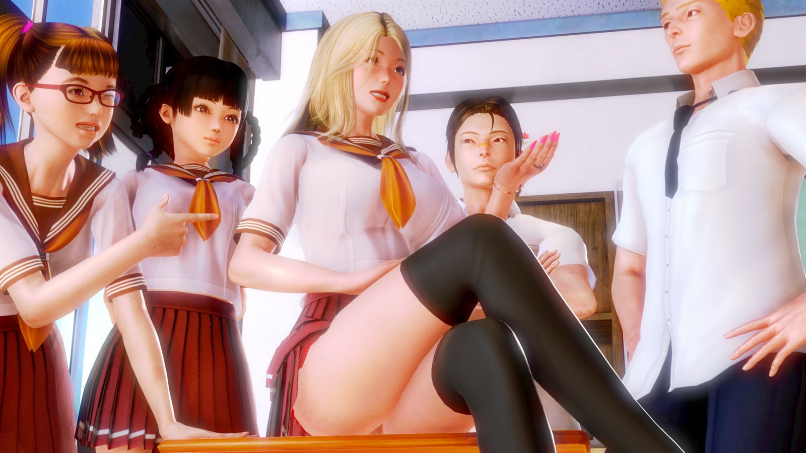 “Our young protagonist has it all: looks, intelligence, big plans for his future, and the drive to make them a reality. And more than that, he even got himself a beautiful girlfiend recently! But everything in his life will take a 180 degree turn once he gets to know his girlfriend’s twin sister, the school’s number 1 slut! How will he deal with the shock, and with the strange attraction he feels towards her…? Angel or devil, model student or bitch gyaru…? It’s your choice! Political drama and hilarious hijinks alike are assured in this erotic comedy. Will this upright young man be able to remain pure among the sea of temptations he will face …? Who are we kidding, of course he won’t!”​
