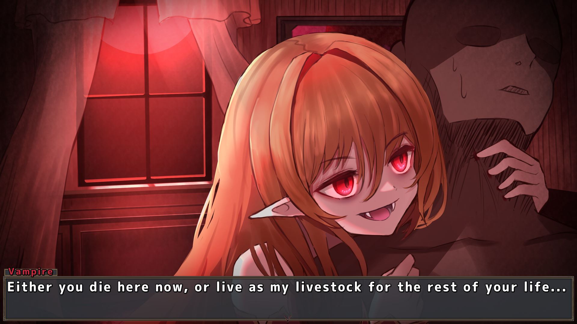 One day, a Vampire is trapped in an old mansion by humans with advanced technology, she want to escape from the mansion but need blood for power. The main character, a human wandered into the place where she was starving and she decided to keep him alive for food. She tries to use humans to destroy the barriers that have been set up throughout the mansion​.