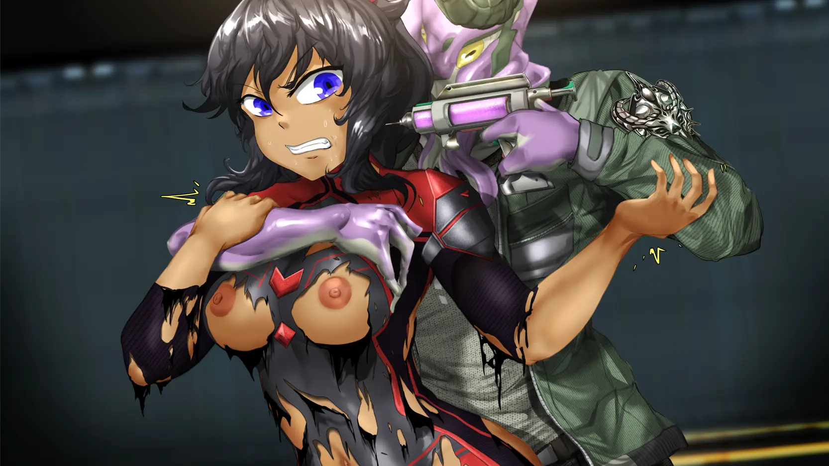 Customize your arsenal of powerful weapons and unlock a tantalizing collection of revealing outfits as you explore exotic worlds brimming with lustful alien species and deadly robotic adversaries.