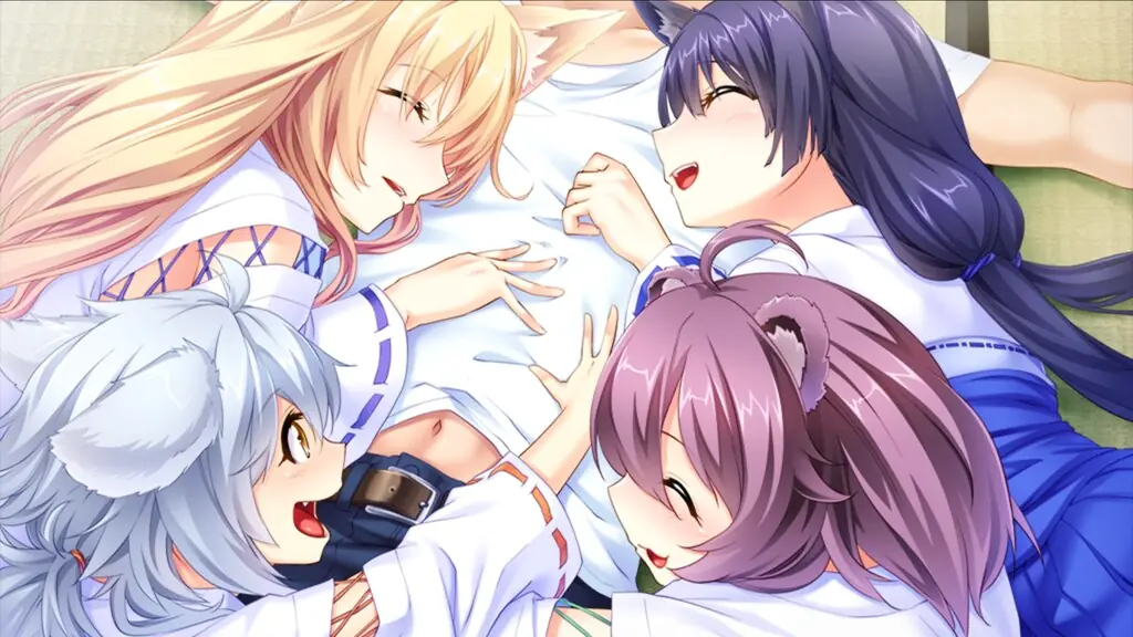 Figurative tail tucked between his legs, the protagonist abandoned the city for his hometown, his dreams broken. Luckily, he was comforted by four girls from childhood… but while it’s good to see them – and live with them! – something’s weird. The girls have actual tails, and furry ears like spirit animals. Create a harem with these four youkai-like girls in a slow-life ADV game with fast-and-intense erotica!