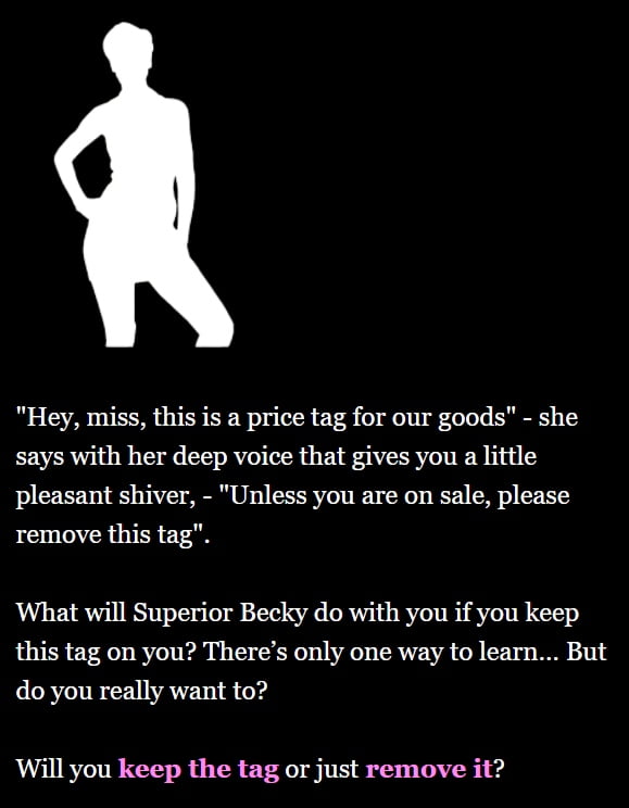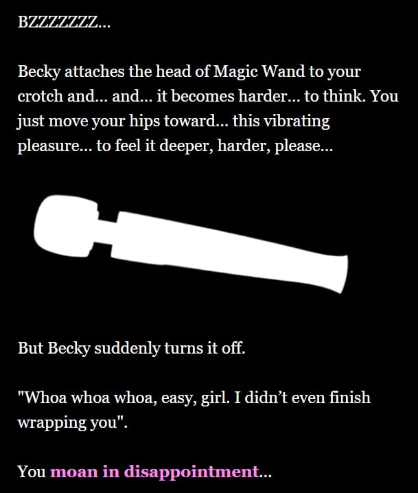 Anal SexBDSMCorruptionExhibitionismFemale DominationFemale ProtagonistGroup SexHumiliationLesbianMale DominationMasturbationMultiple EndingsMultiple penetrationOral SexSex ToysSlaveSpankingText BasedVaginal Sex