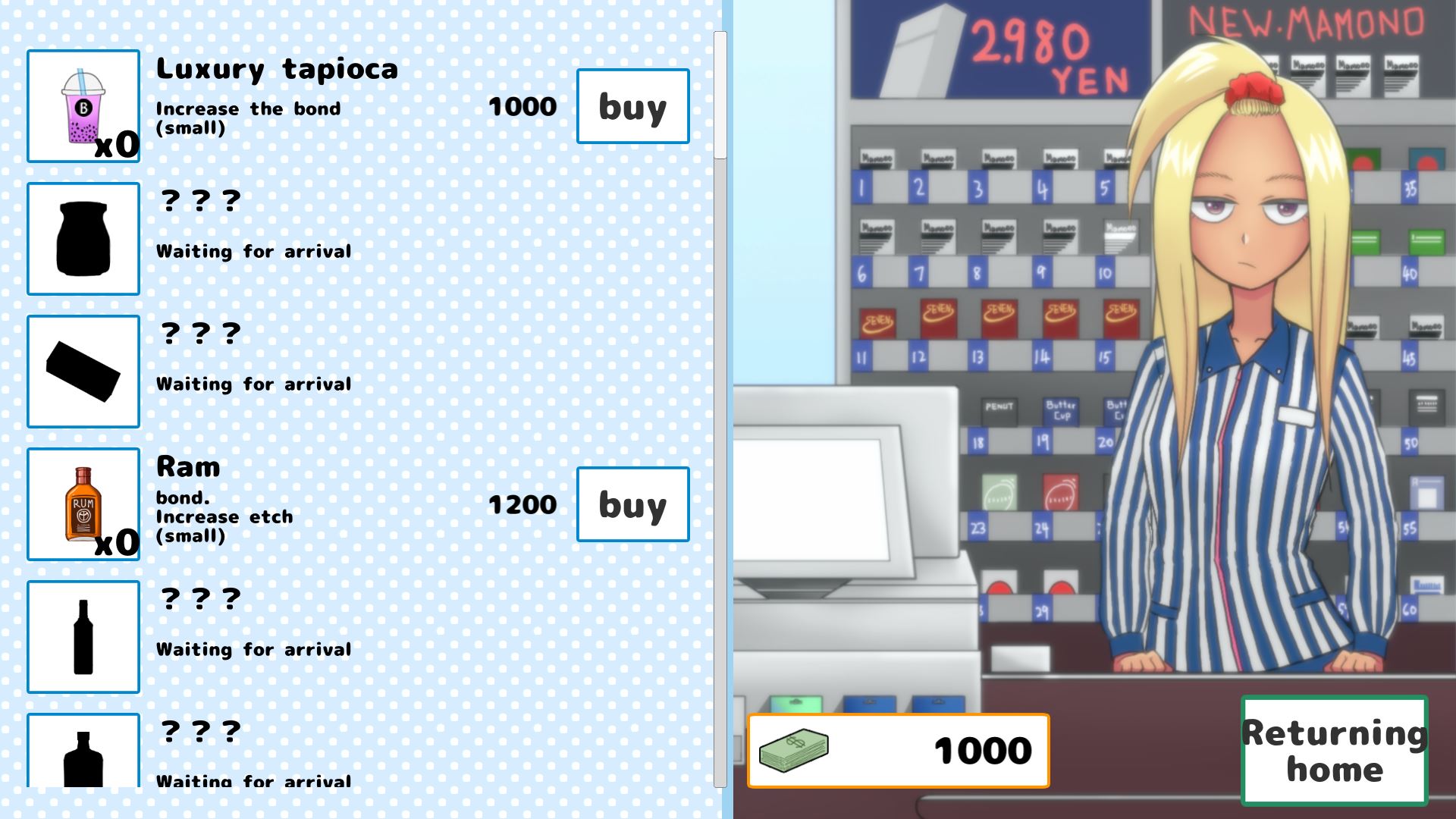 As a reward for letting her live with you, she will help you to relieve your daily sexual desires.