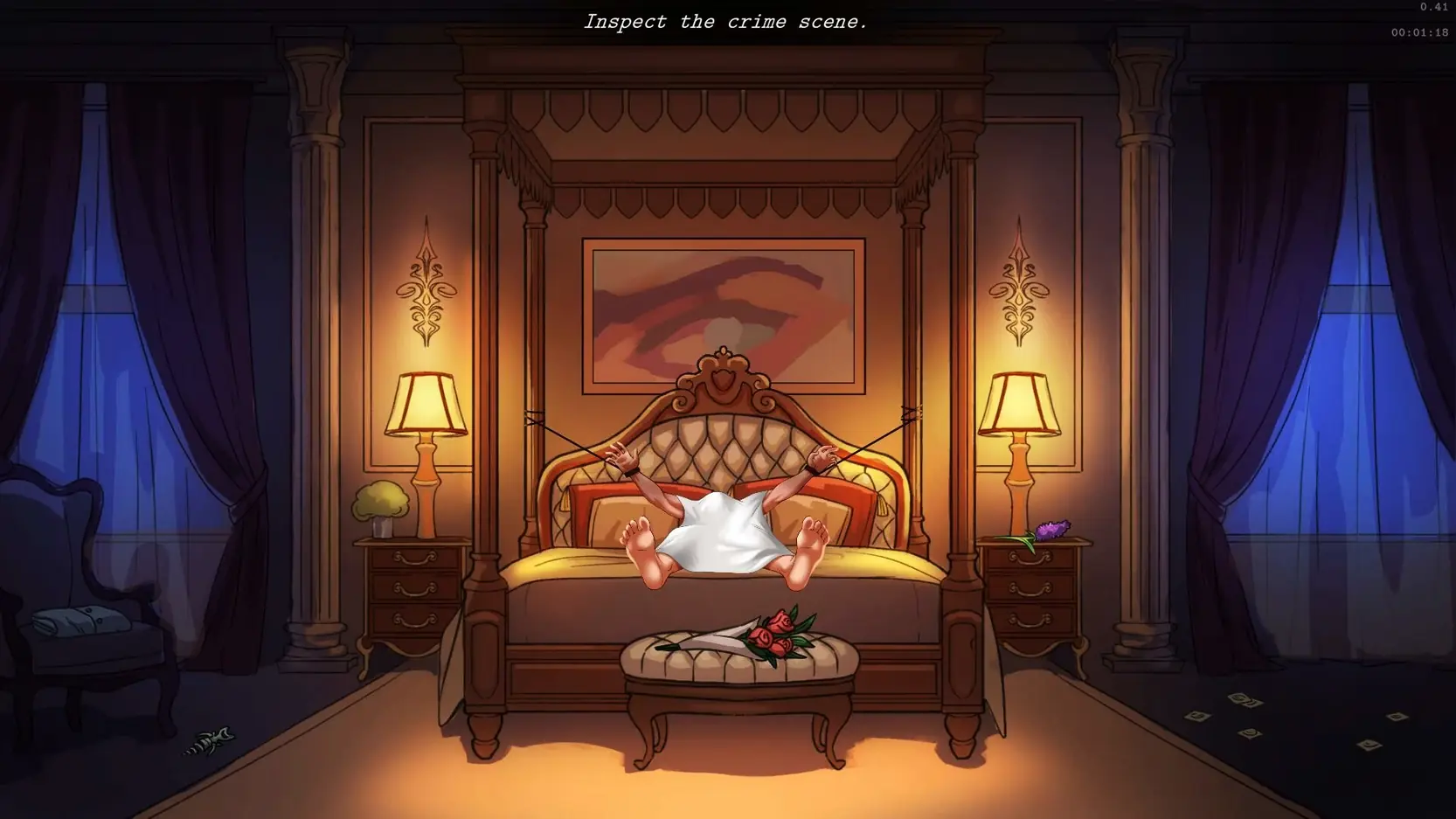 “Withered Flower” is a nonlinear visual novel set in 1980s America. You play as a detective trying to solve a series of mysterious murders while fighting to stay alive.