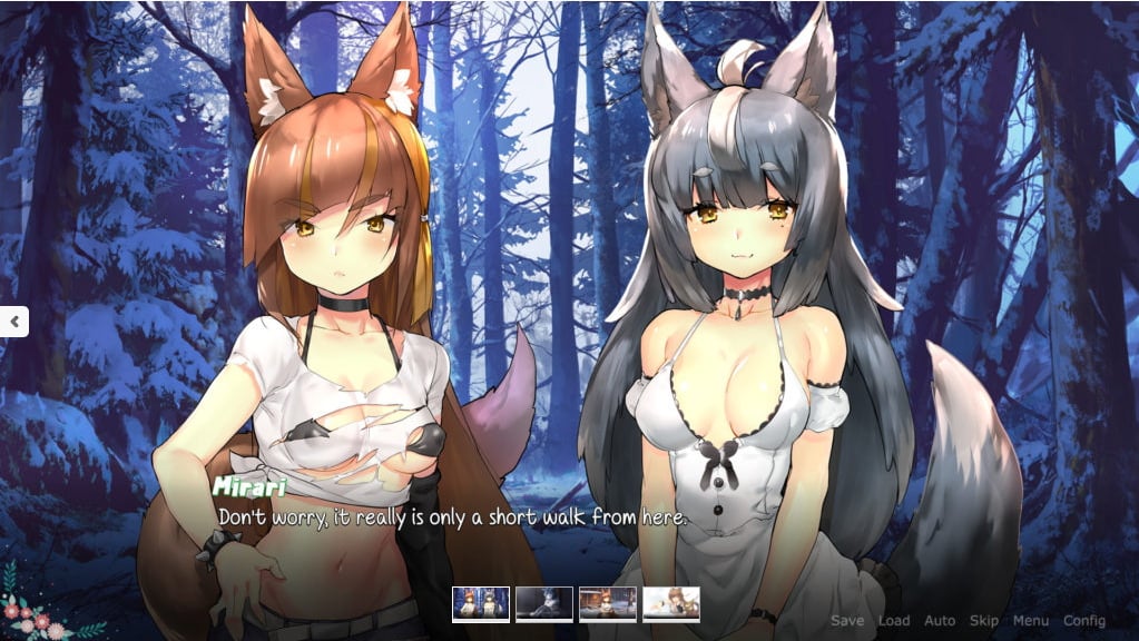 Moving far away from civilization, you hoped to live a life of solitude in a snowy cabin. Just as you begin to adapt to your peaceful new life, you discover an intruder; a wolf-girl, alone and shivering in your storeroom. Fearful for her life, you take the girl in for the night, offering her a place to stay until she recovers.