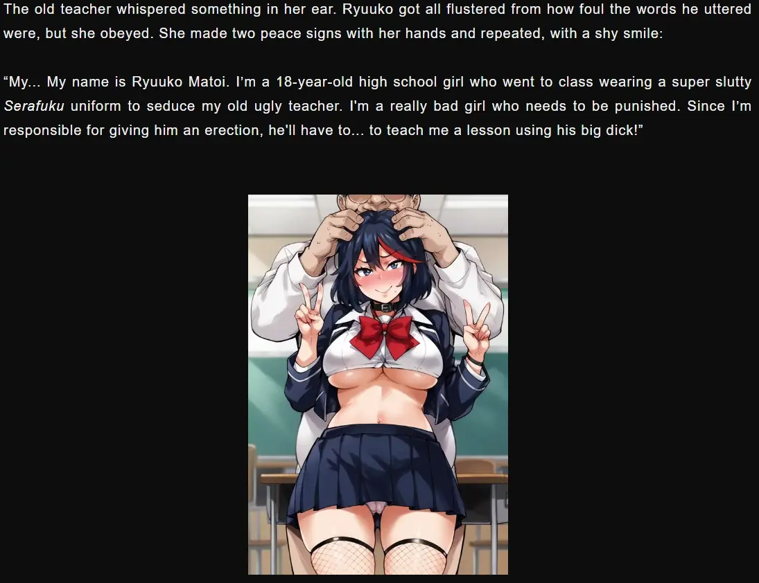 Zabulon’s Archive isn’t a visual novel. It’s many, MANY visual novels. I’ve been publishing stories on several platforms some time now. Some are original, others are fan fictions. Some contain GIFs, others contain AI renders with various artists’ style. All are smutty. Do you want to follow the story of a stripper reuniting with her grumpy high school teacher while she’s in the middle of a show on stage? Are you interested in seeing an Onlyfans model NTR her boyfriend? Do you want to see Gwen Stacy trying to wreck her mom’s marriage by seducing her step-dad? Momo Ayase have a one-night stand? Sakura Haruno getting bought as a sex slave? Well then, those stories and many more await you in the Archive. No paywall, no game loop. You just need to read (harsh, I know).