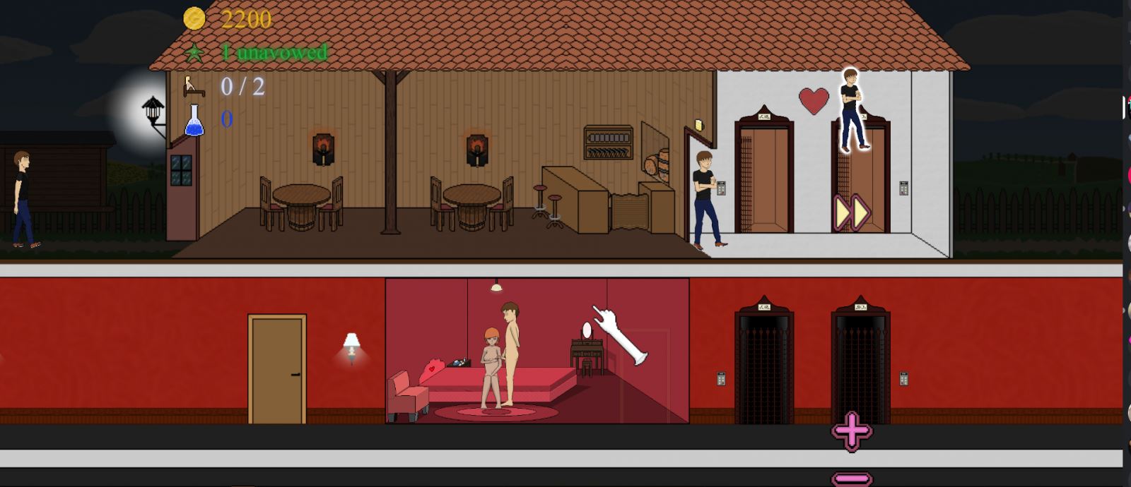 Assign your girls to a work room and swap them around if necessary. Does your girl meet your costumers likes? If so, what are you waiting for? Show him her room! You’ve got a lot to do. Observe your girls, if they are doing their job well. The happier a client, the more coins he will leave for you to improve your brothel. Furthermore his word-of-mouth is required to allure more of his kind.​