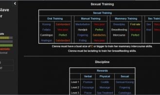 Fantasy Slave Trainer is a game that emulates the slave trade of a fantasy world. The player gets to play as a brothel owner (only one available at the moment), slave breeder or a slave trainer. Sl...